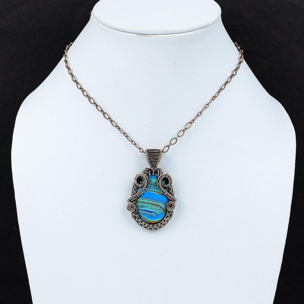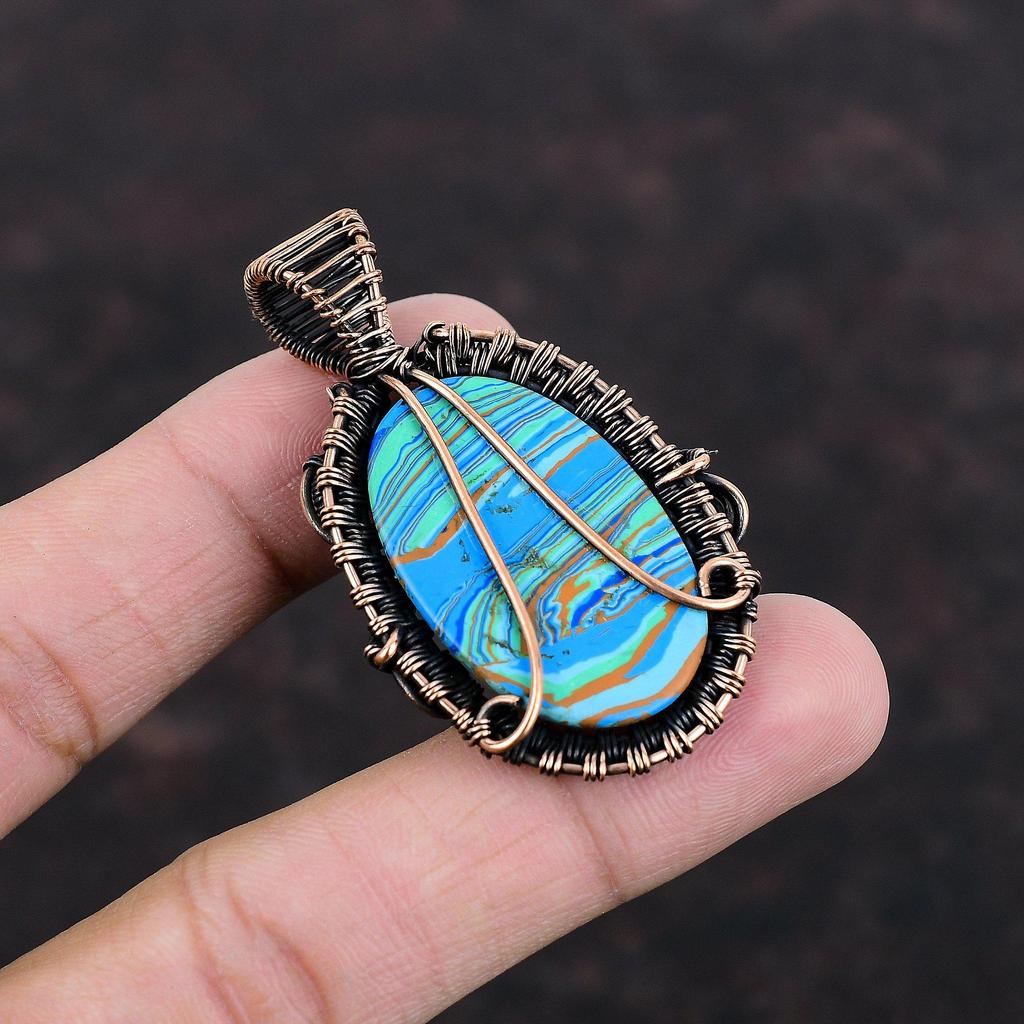 Подвеска из Радужного Кальцита, обернутая медной проволокой, ювелирное изделие из драгоценного камня, бохо-подвеска, подвеска ручной работы, медное украшение, подарок для мамы, подвеска с камнем по месяцу рождения