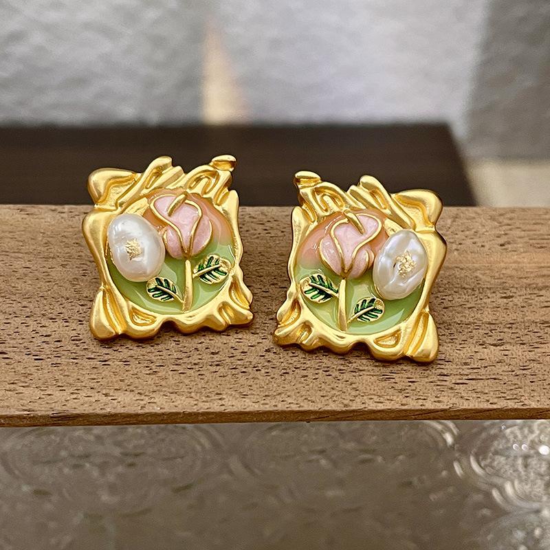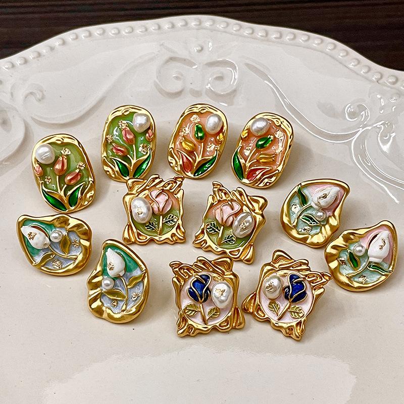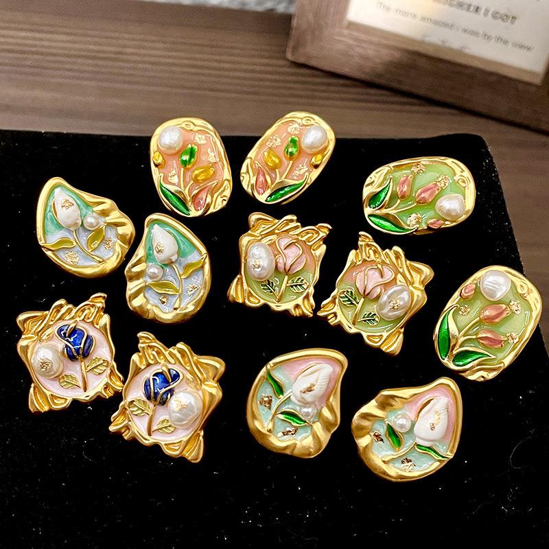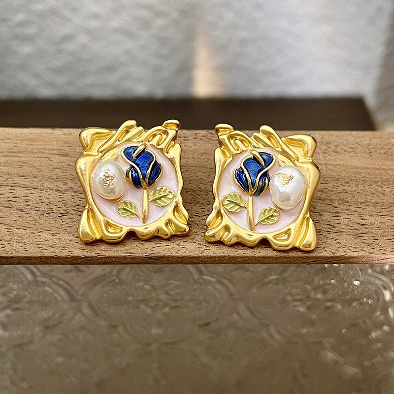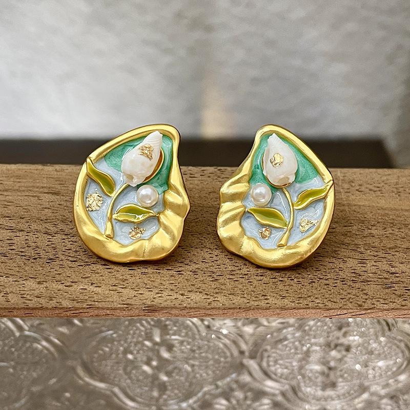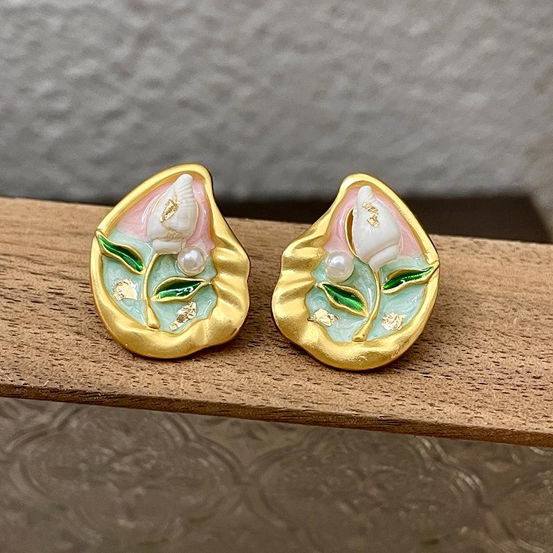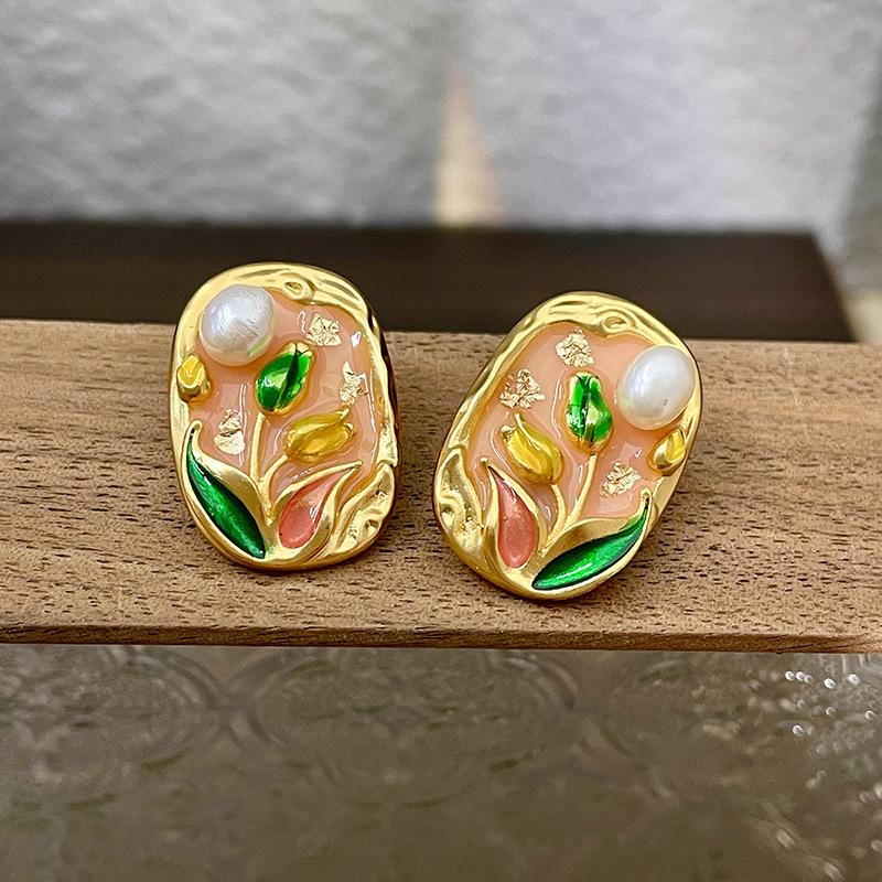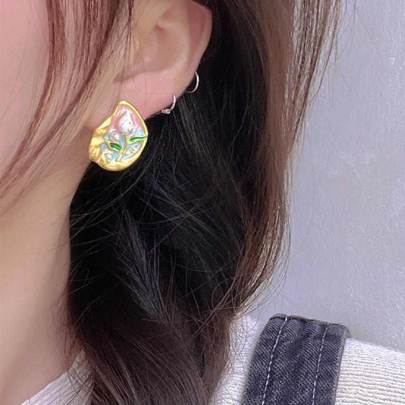 Серьги с масляной живописью в стиле барокко, женские серьги в стиле ретро во французском стиле, легкая роскошь, серьги высокого класса, серьги в художественном стиле