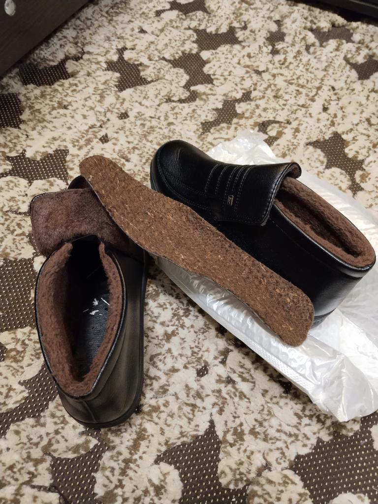 Получил в сборной посылке, на две недели позже обещанного срока.((( В описании, на фото, похожи на мужские полусапожки. А в реальности, по сути, утеплённые галоши. Тоненькая тряпичная стелька положена внутрь, прямо на подошву. Искусственная кожа больше напоминает резину. Гнутся, сминаются, сгибаются легко, как галоши. В России утеплённые галоши продают по 500...700₽. Но их можно померить и купить сразу. А тут, полтора месяца ожидания, "кот в мешке" и цена выше.((( Да, и то, цена в 750₽, потому, что в подборке из 6 товаров. Начальной цены они точно не стОят!!!