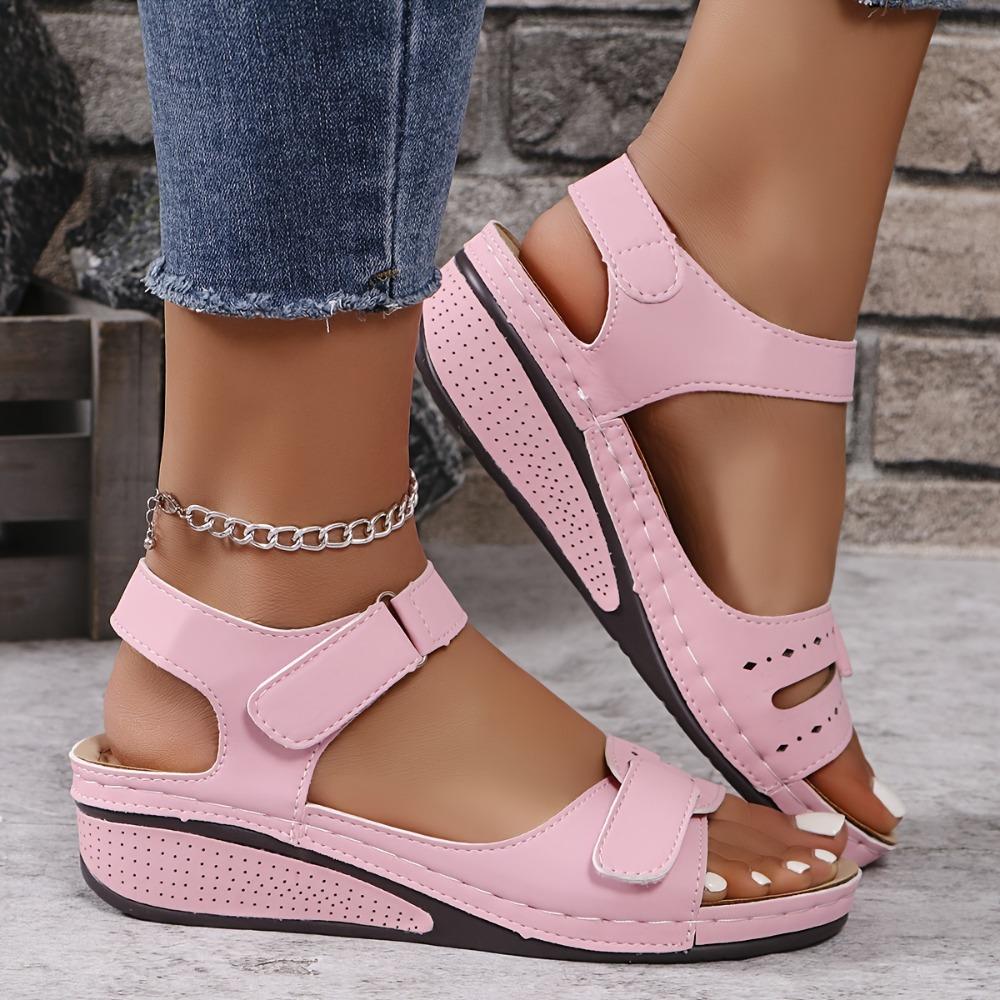 Женские повседневные однотонные сандалии с пряжкой на щиколотке и платформой, прогулочная обувь на мягкой подошве, летняя отпускная обувь на танкетке