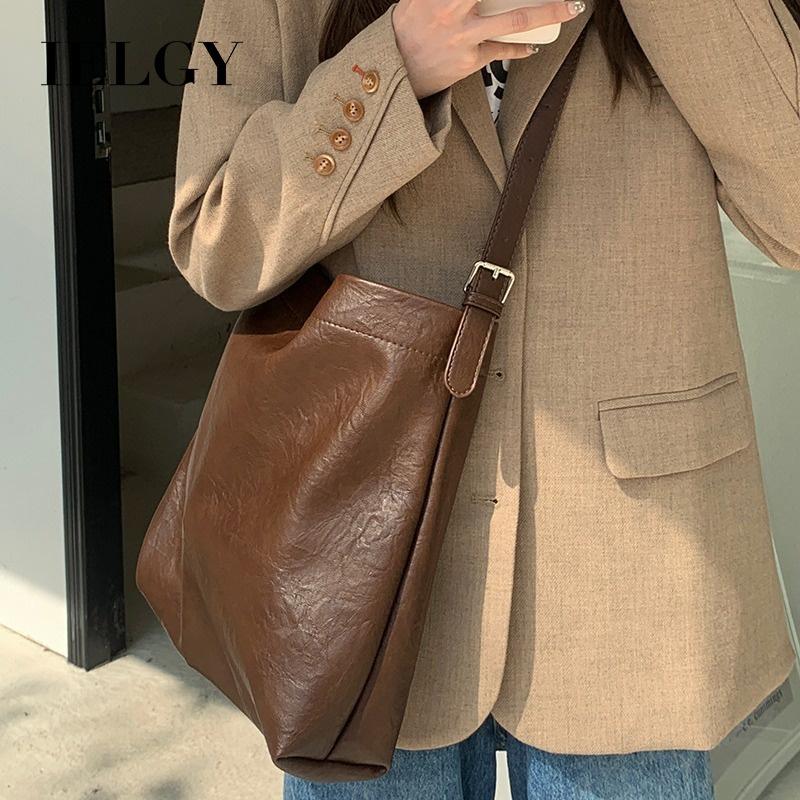 Женская ленивая большая сумка-тоут, модная пригородная сумка-ведро из мягкой кожи, студенческая сумка через плечо — купить товар онлайн с бесплатной доставкой по всему миру!