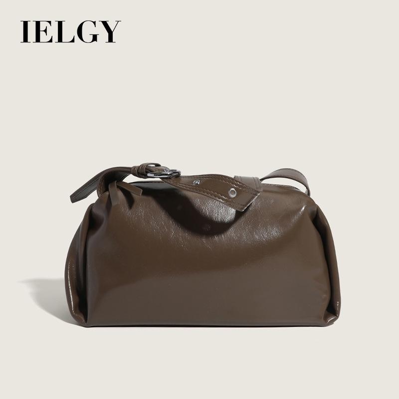 IELGY Женская сумка-подушка из текстурированной масляно-вощеной кожи однотонного цвета, глянцевая сумка через подмышку, сумка-мессенджер через плечо