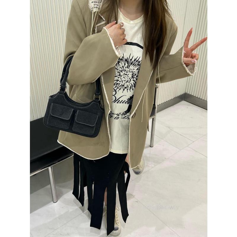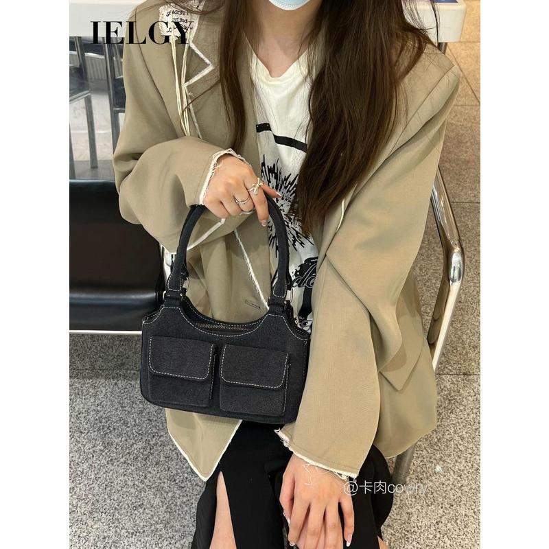 IELGY Женская винтажная джинсовая синяя сумка под мышками, портативная