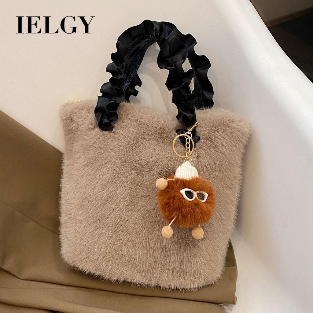 IELGY Женская пушистая сумка-ведро, пушистая ручная сумка через плечо