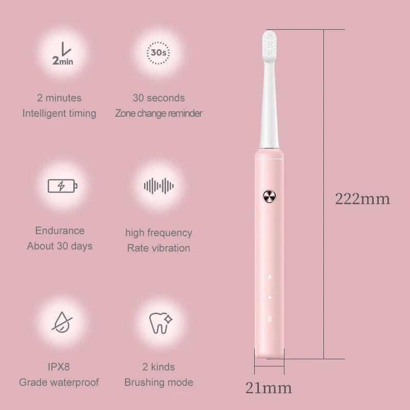 • IPX8 водонепроницаемый :Эта зубная щетка имеет водонепроницаемость IPX8 и позволяет безопасно использовать ее во влажных условиях, например в душе.