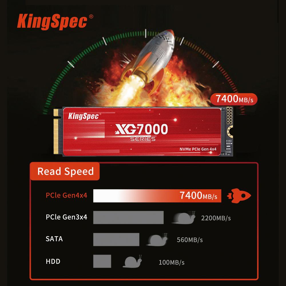 SSD KingSpec M.2 NVMe 2280 PCIe4.0x4 Твердотельный накопитель Скорость чтения до 7400 МБ/с XG7000 серии 2280