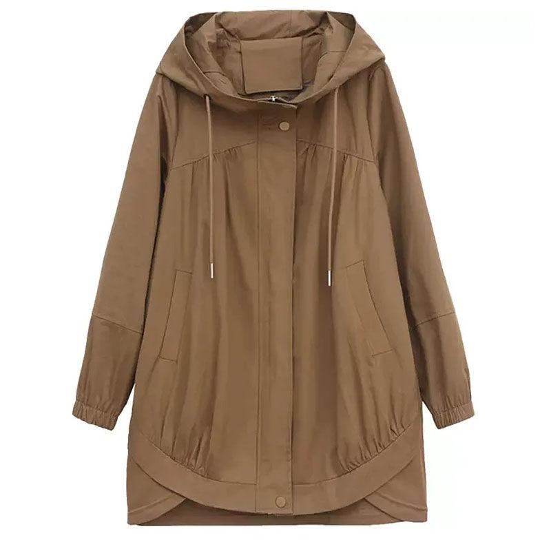 Ветровка женская длинная стильная весенне-осенняя корейская версия плюс размер модная женская куртка средней длины с капюшоном