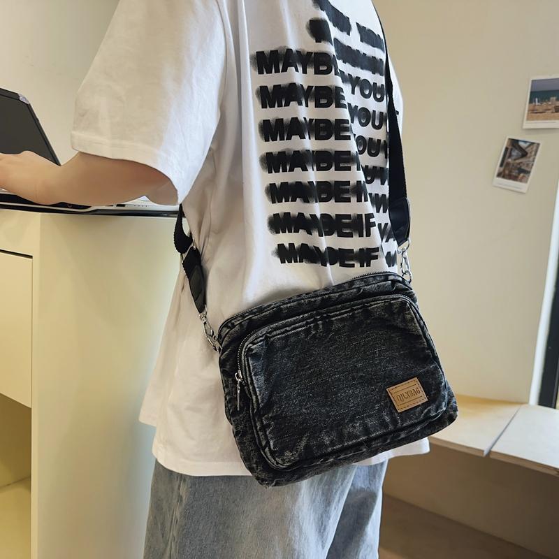 Винтажная джинсовая сумка, студенческая сумка через плечо, мужская сумка через плечо, женская маленькая сумка