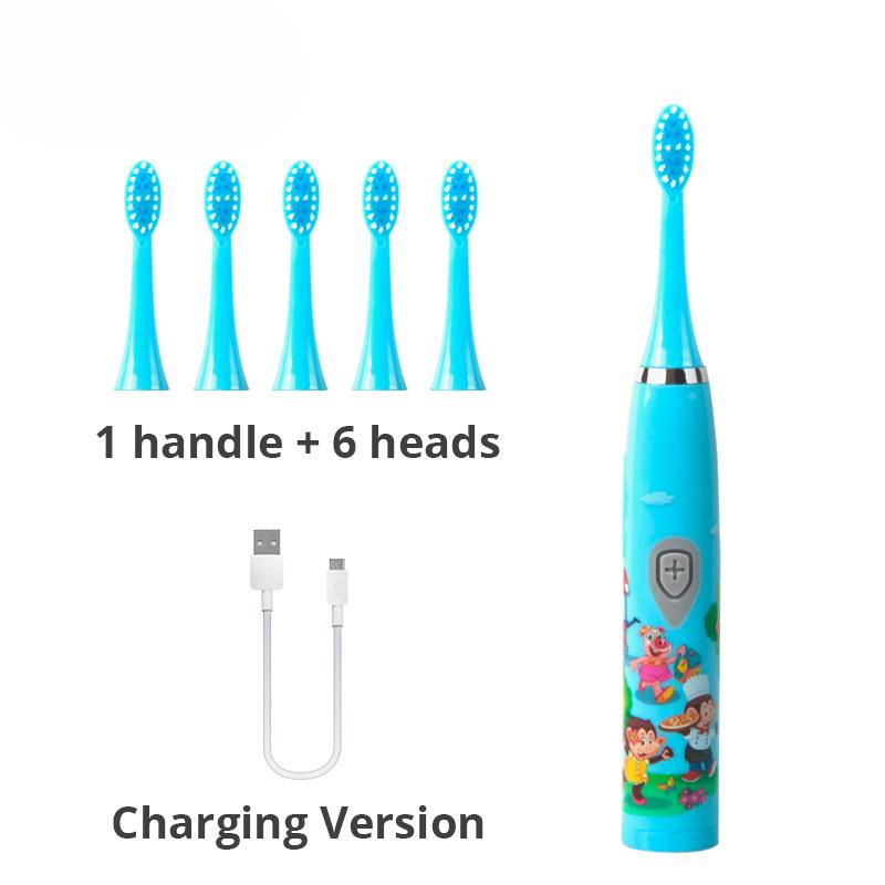 Детская электрическая зубная щетка IPX7, водонепроницаемая для взрослых, USB-зарядка, перезаряжаемая, 3/6 щеток, сменные насадки
