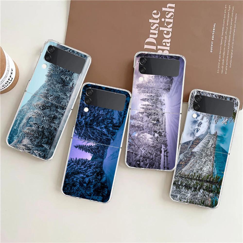 Зимний чехол для телефона с рисунком природы, снега и путешествий для Samsung Galaxy Z Flip 3 4 5, жесткий складной чехол из поликарбоната для Samsung Z Flip3, прозрачный чехол