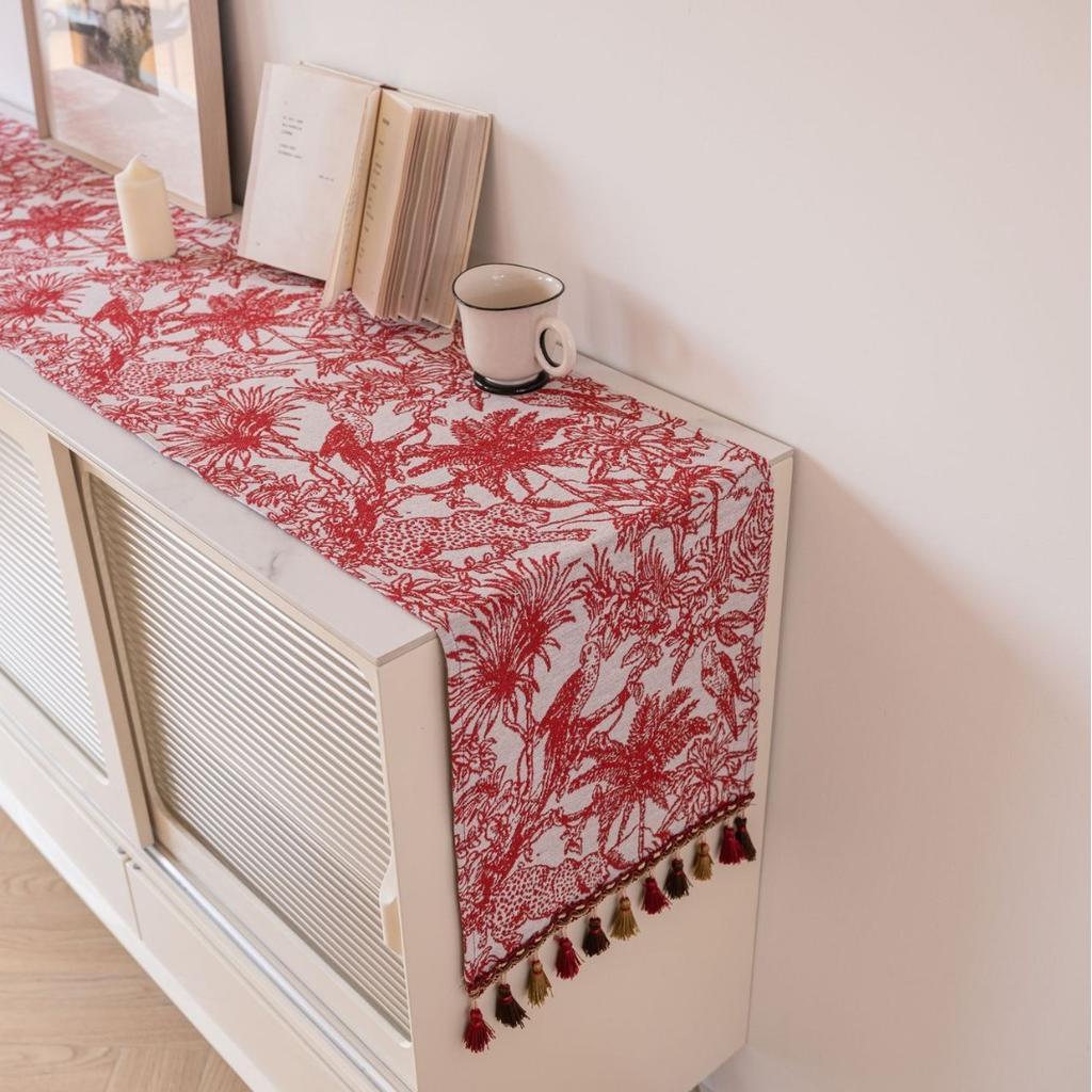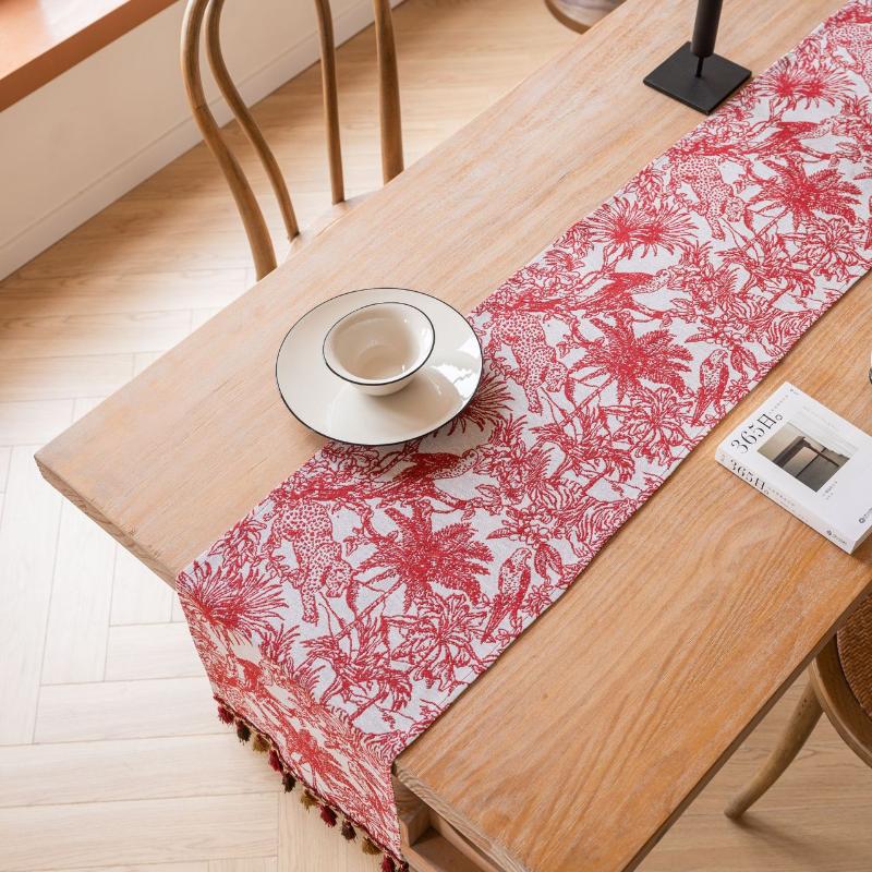 Красная кокосовая пальма кисточки дорожка для стола, жаккардовая ткань растения кухонный обеденный стол украшение для домашнего праздника