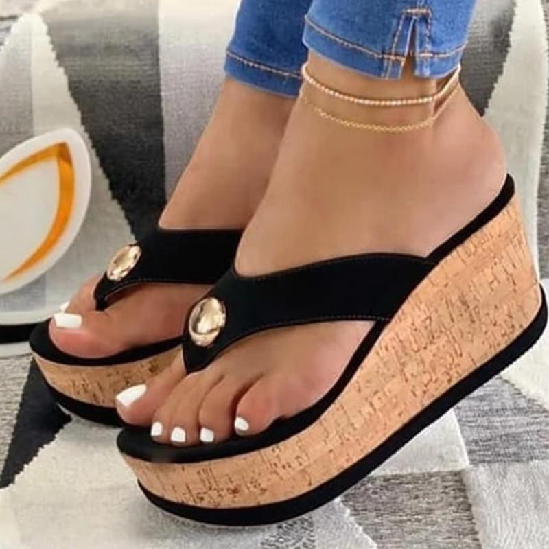 Женская обувь Бисквитные сандалии больших размеров Наклонные шлепанцы с толстой подошвой Женская модная верхняя одежда Тапочки