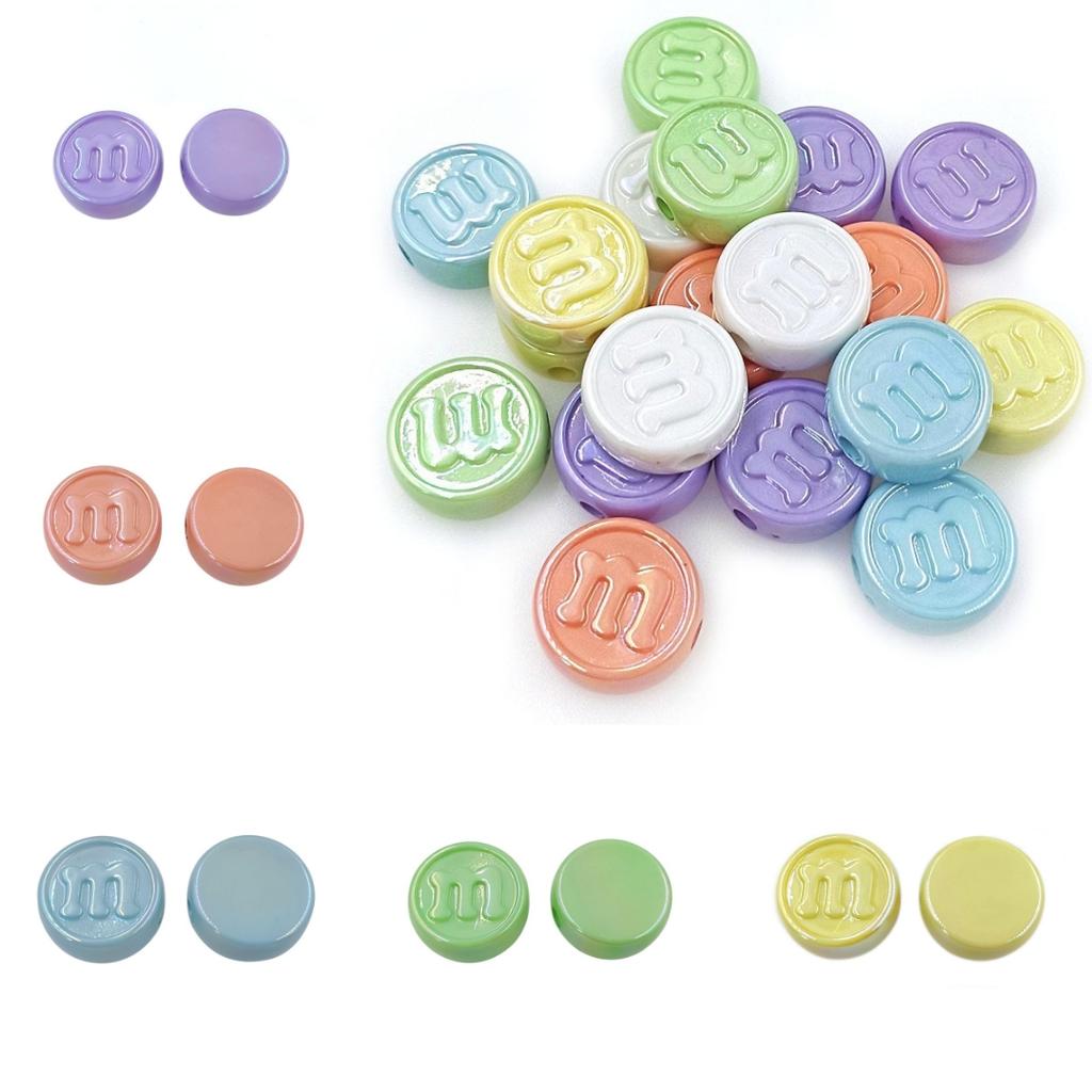 Бусины-подвески, подвески, акрил, 10 шт., материал, буква М, плоские круглые бусины, УФ-цвет, креативное изготовление браслетов, сплющенные, сделай сам, ювелирные аксессуары