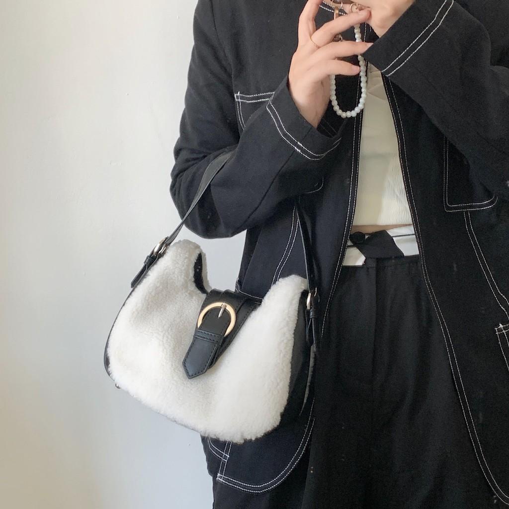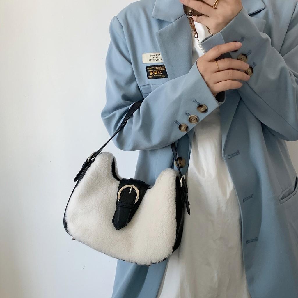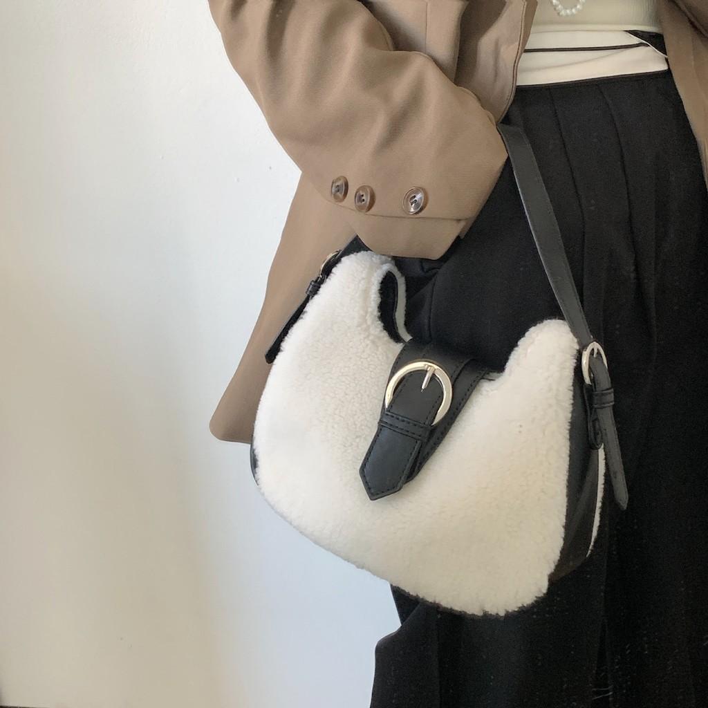 IELGY Женская универсальная сумка через подмышку, ручная сумка из овечьей шерсти