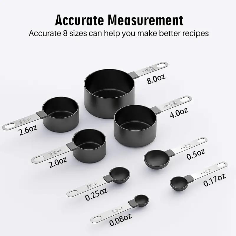 1 комплект мерных чашек и ложек, 8 шт., штабелируемая ручка из нержавеющей стали, точная столовая ложка для измерения сухих и жидких ингредиентов