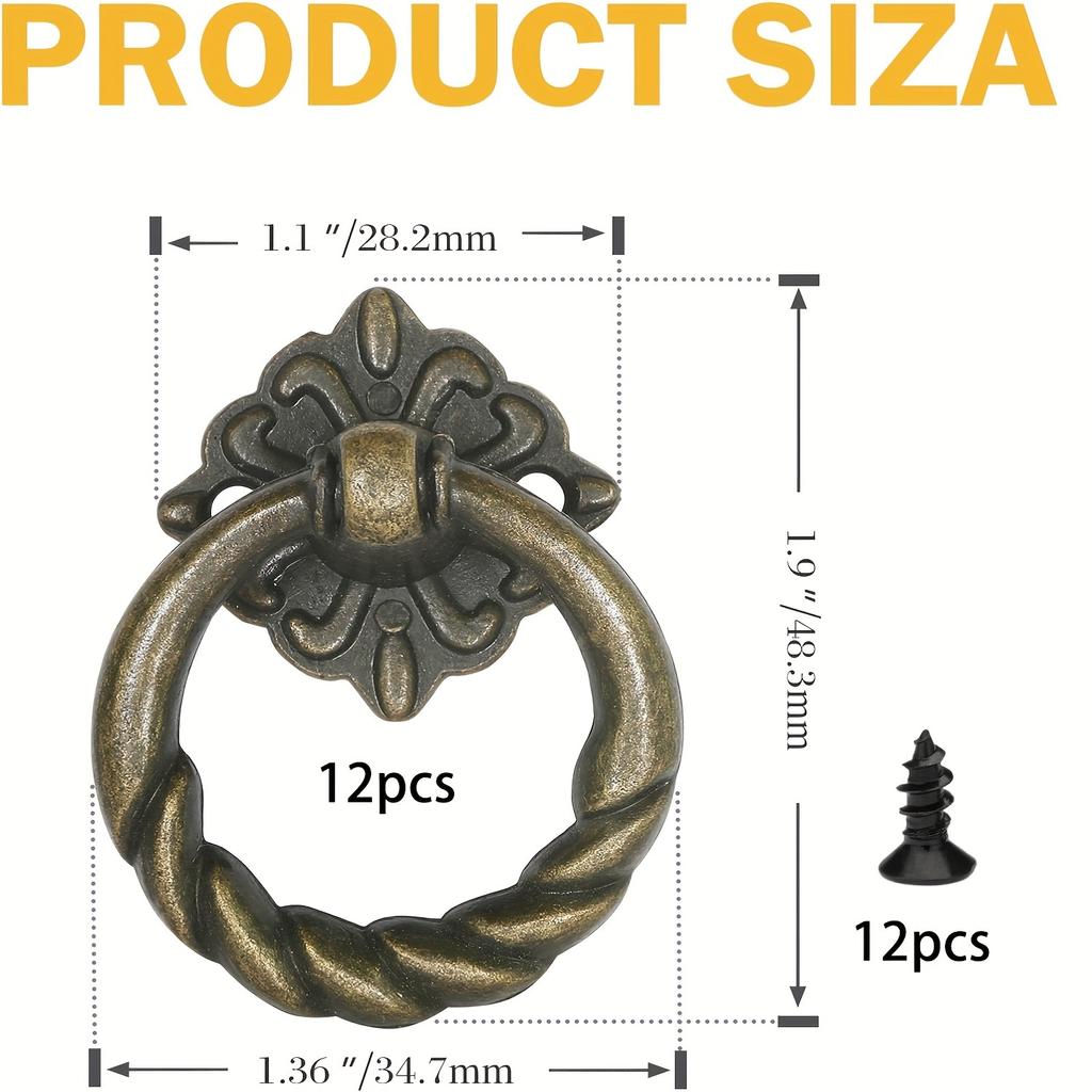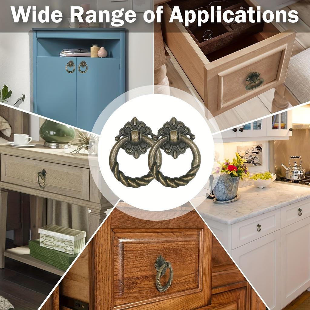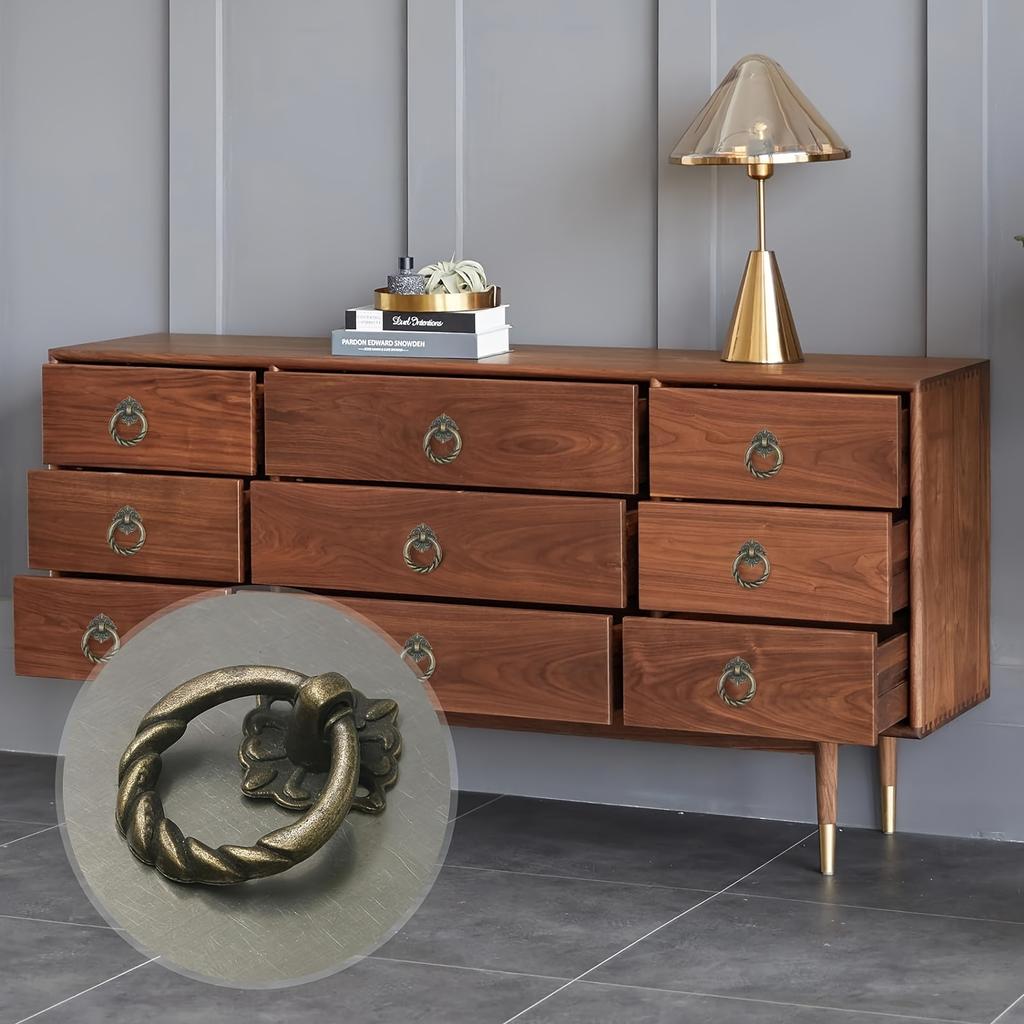 12 шт. бронзовые подвесные кольца для цветов, ручки для выдвижных ящиков, компактные винтажные кольцевые ручки для шкафа, европейские круглые ручки для мебели, металлические кольцевые ручки для выдвижных ящиков