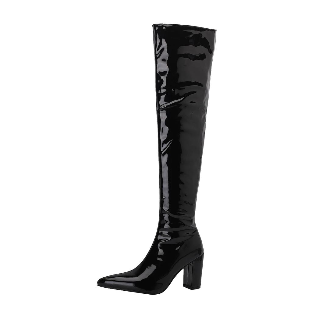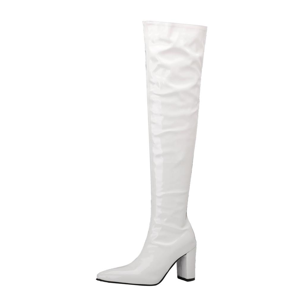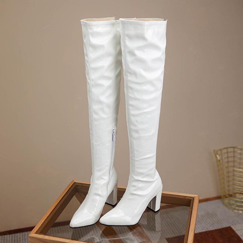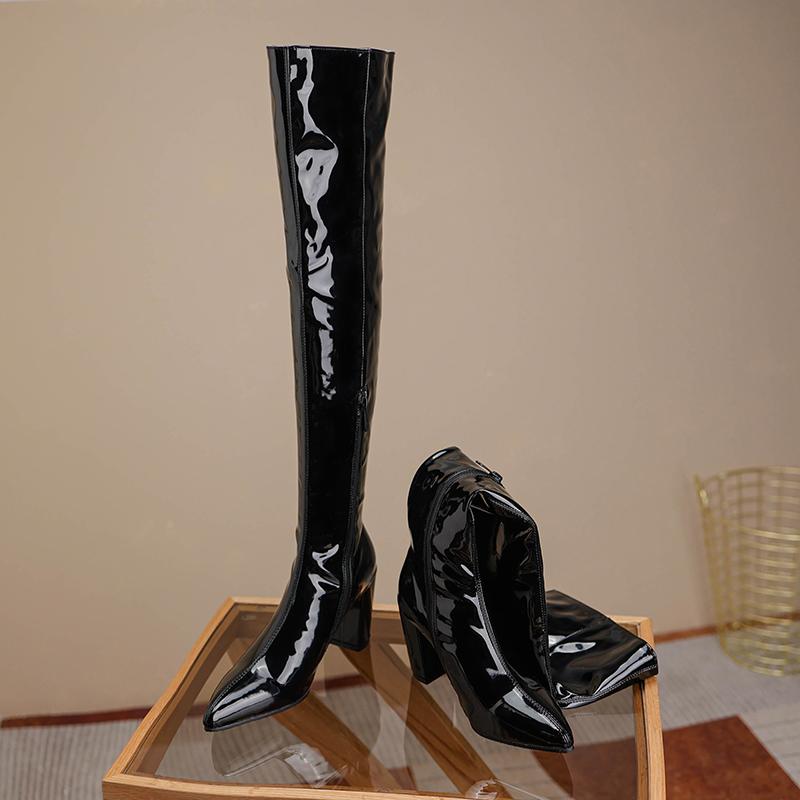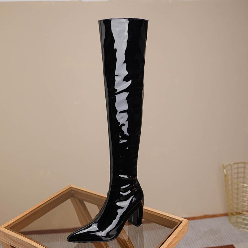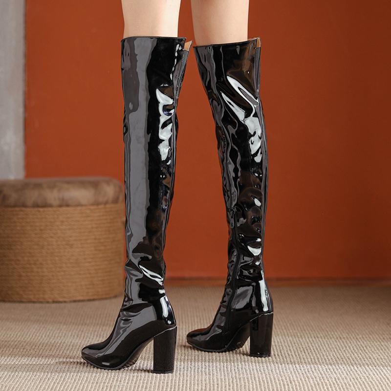 Женские сапоги на высоком каблуке, осенние и зимние новые однотонные сапоги до колена в европейском и американском стиле на толстом каблуке