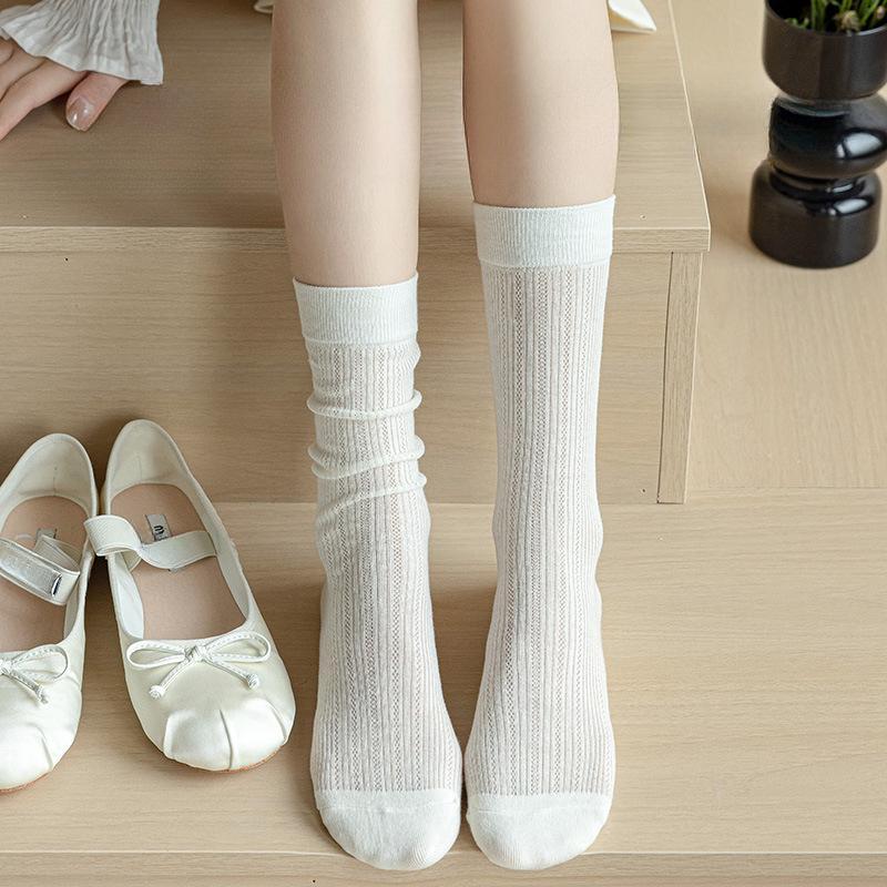 Женские носки Лолита, милые носки средней длины для девочек, тонкие дышащие однотонные черные, белые, серые свободные длинные носки из сетки