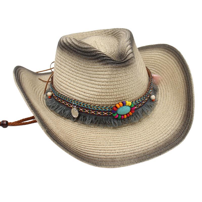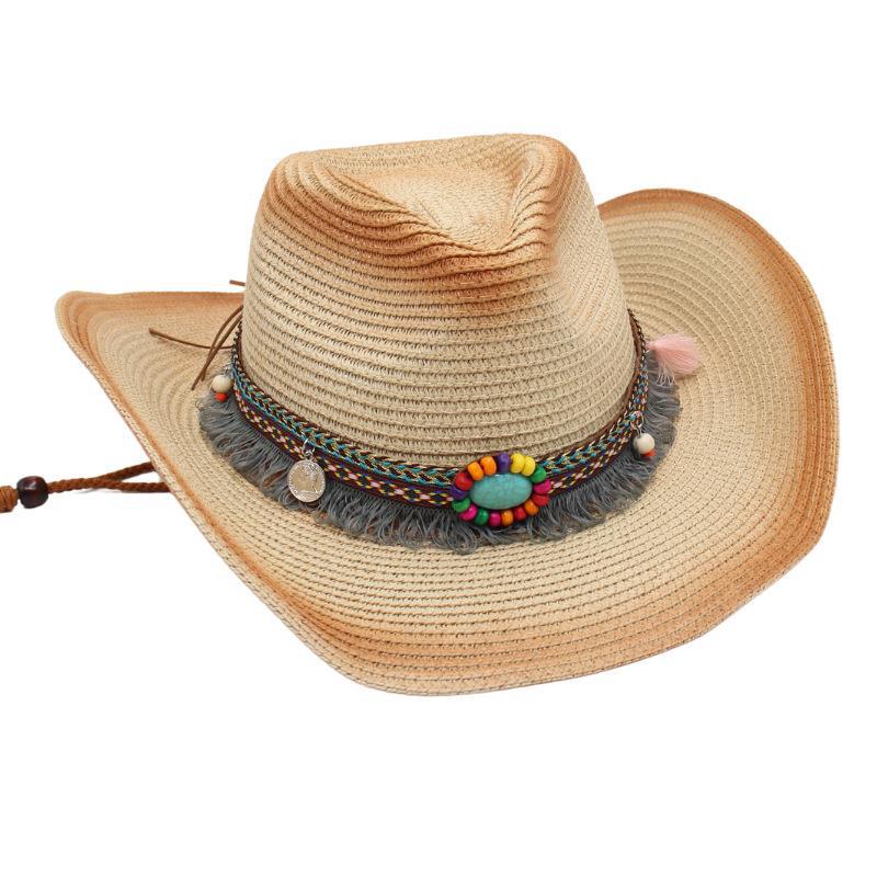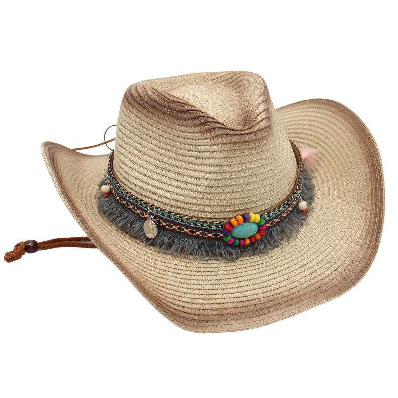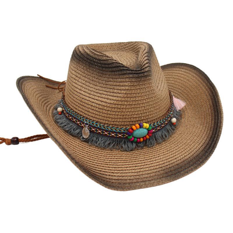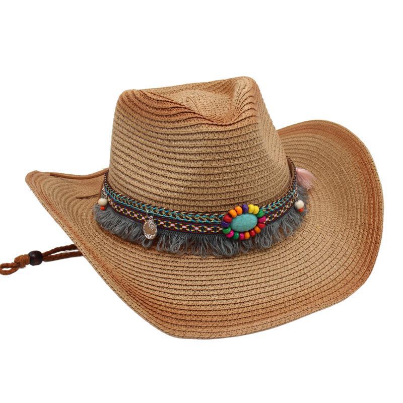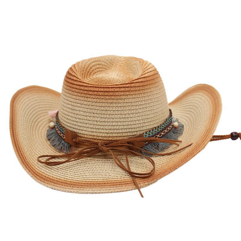 Ковбойская соломенная шляпа с кисточками, солнцезащитная шляпа от солнца, этническая ветрозащитная шляпа для пляжа в стиле ins