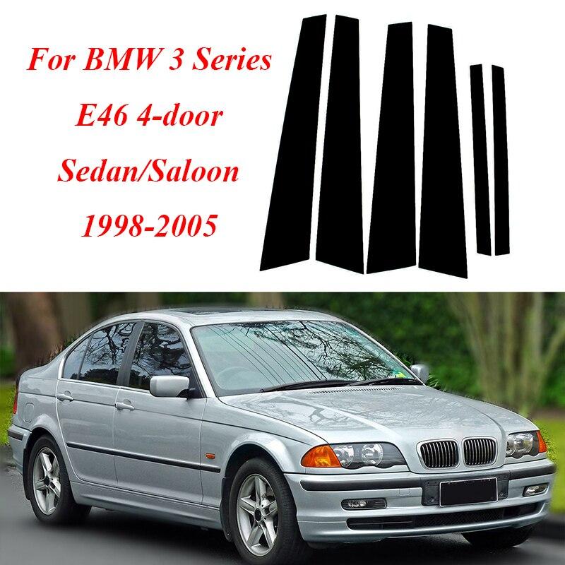 6 шт./компл., стойки для стоек автомобиля, глянцевый черный рояль для BMW 3 серии E46, 4-дверный седан/седан 1998-2005, наклейки на обшивку двери, окна