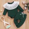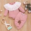 Комбинезон с кружевными оборками и длинными рукавами для маленьких девочек, боди + брюки, наряды