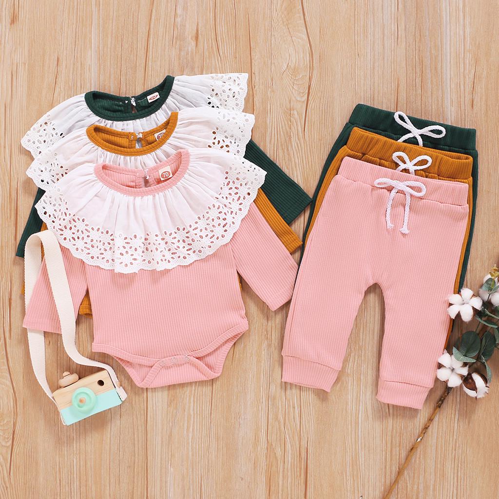 Комбинезон с кружевными оборками и длинными рукавами для маленьких девочек, боди + брюки, наряды — купить товар онлайн с бесплатной доставкой до всему миру!