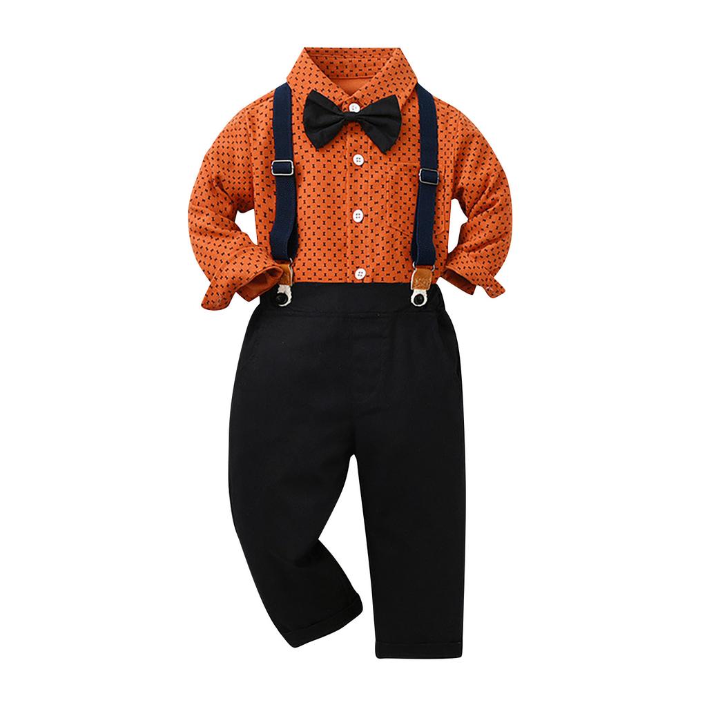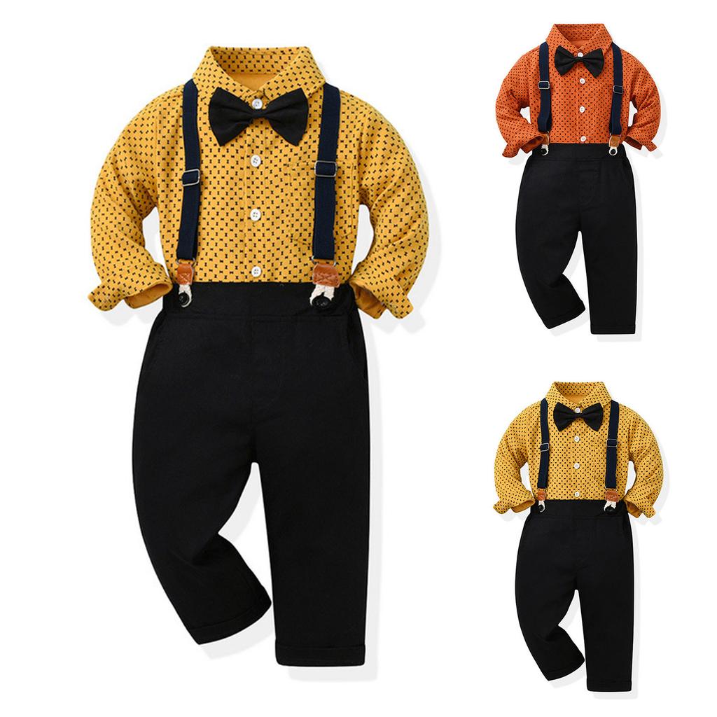 Однотонная футболка с галстуком-бабочкой для маленьких мальчиков, топы + брюки на подтяжках, наряды