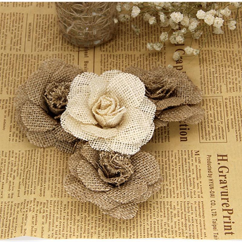 2 шт. 9 см, джутовая гессианская мешковина ручной работы, цветы розы, потертый шик, деревенский свадебный декор, принадлежности для рождественской вечеринки, сделай сам