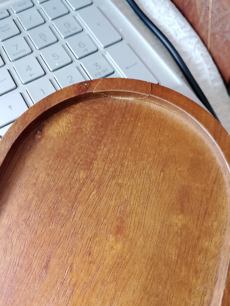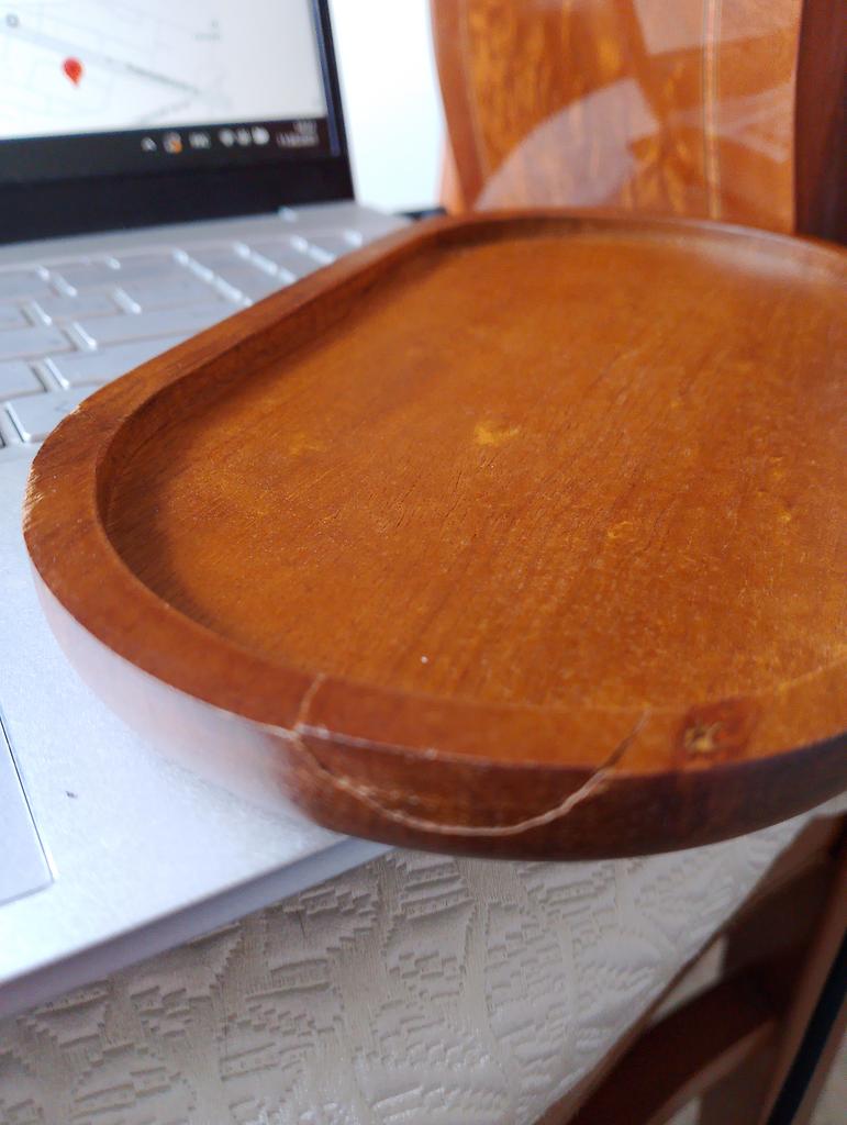 Маленькие тарелочки , величиной с кисть руки. Мягкое дерево, поэтому много незначительных повреждений. Заказала 6 штук, одна тарелка пришла со сколом. Продавец упаковал уже отколотую тарелку.
