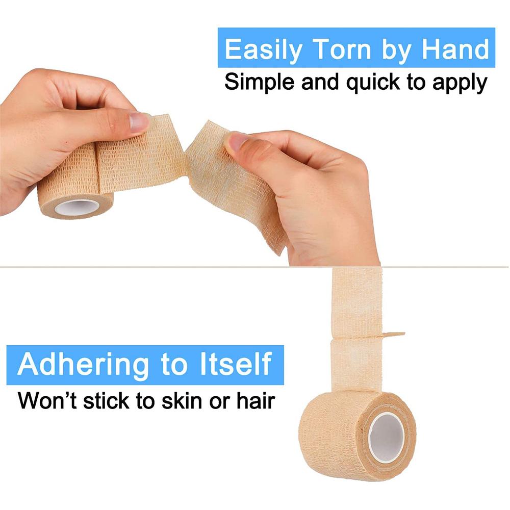 Они обладают способностью самоклеиться, поэтому лента может оставаться на месте весь день и не оторваться от пота или воды.. Они предназначены только для того, чтобы прилипать к себе, а не к коже, одежде или волосам.. Больше никаких проблем при снятии повязок! Действительно удобно для людей и домашних животных.