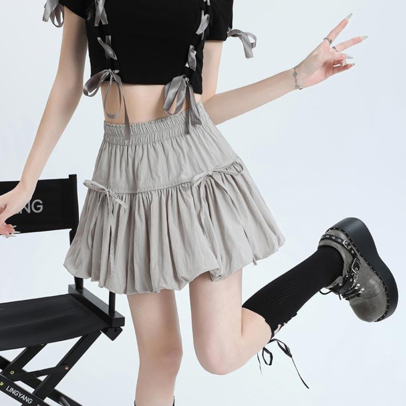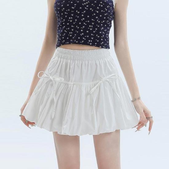 Юбка-фонарь трапециевидной формы с эластичной резинкой на талии для женщин, летние милые бандажные шорты с бантом, повседневная однотонная модная одежда Y2k