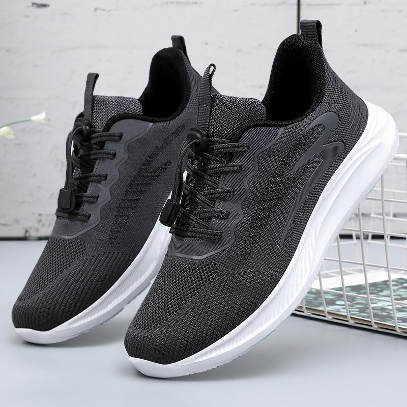 Мужская обувь Весна Новые прогулочные туфли для людей среднего и пожилого возраста Мягкая подошва Удобная обувь для пожилых пар Летающие тканые спортивные мужские туфли