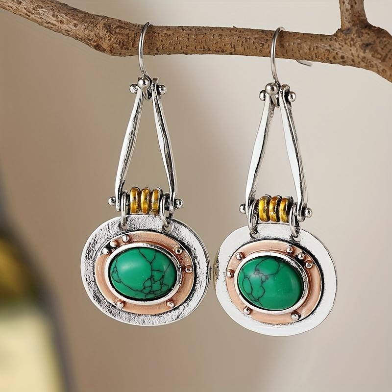 Модные винтажные висячие серьги с бирюзой — медные посеребренные украшения для женщин — идеальная идея для подарка