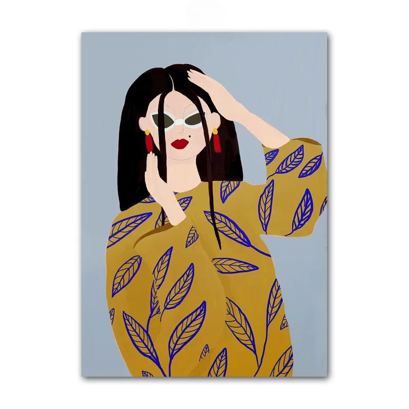 Абстрактная минималистская мода сексуальная девушка кофе цветок настенное искусство холст картина линия плакаты и печать гостиная украшение дома