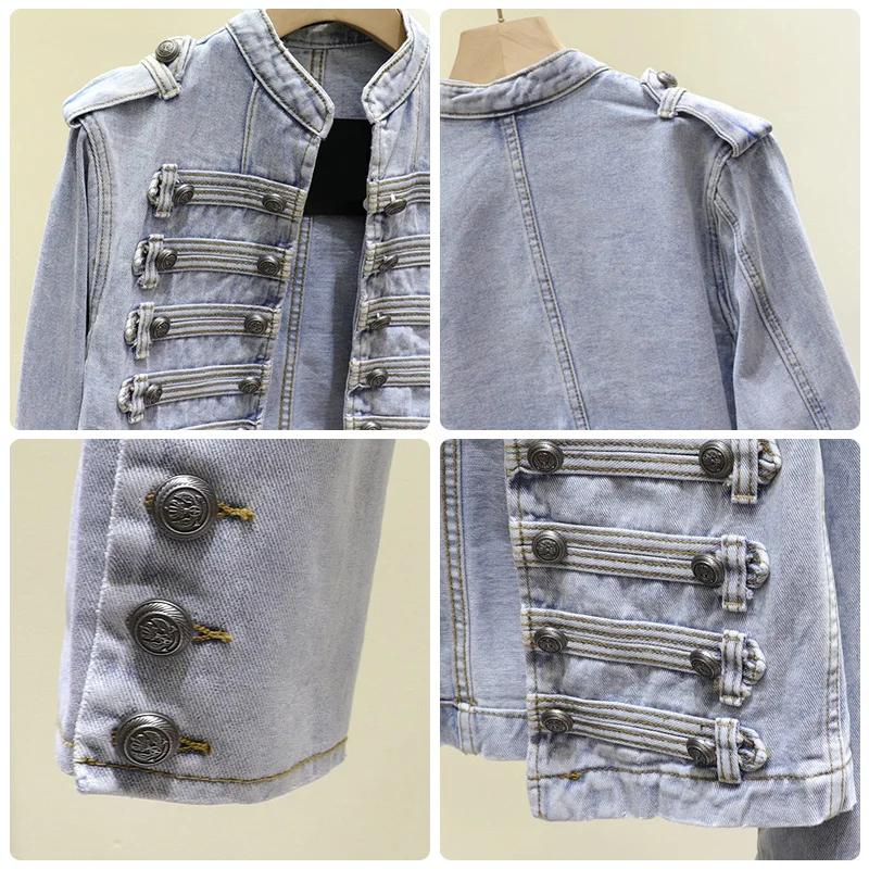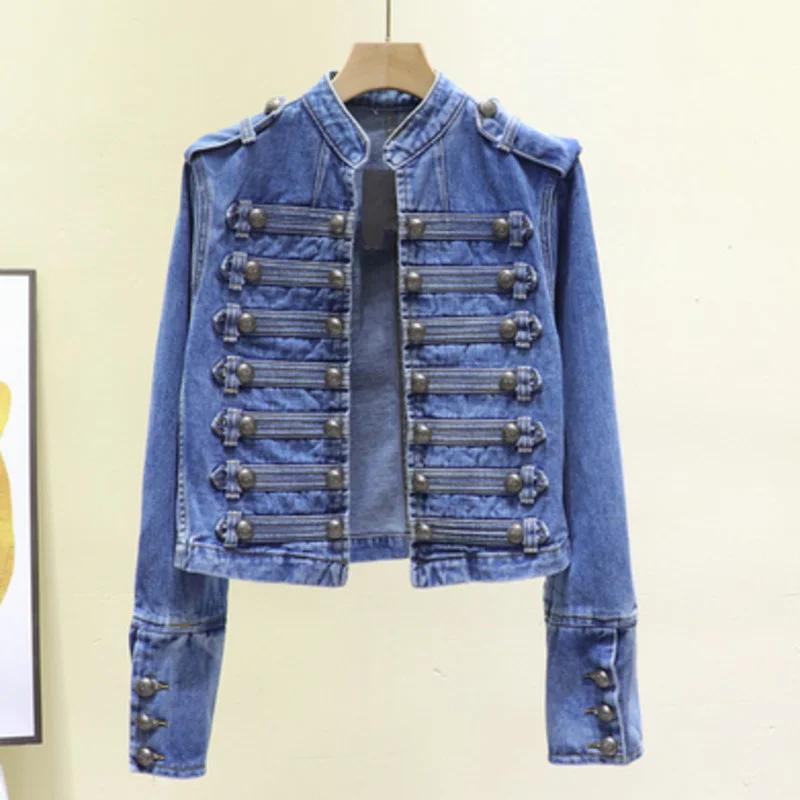 Красивые джинсовые куртки в стиле ретро с воротником-стойкой, женские двубортные тонкие короткие джинсовые куртки, женская верхняя одежда больших размеров