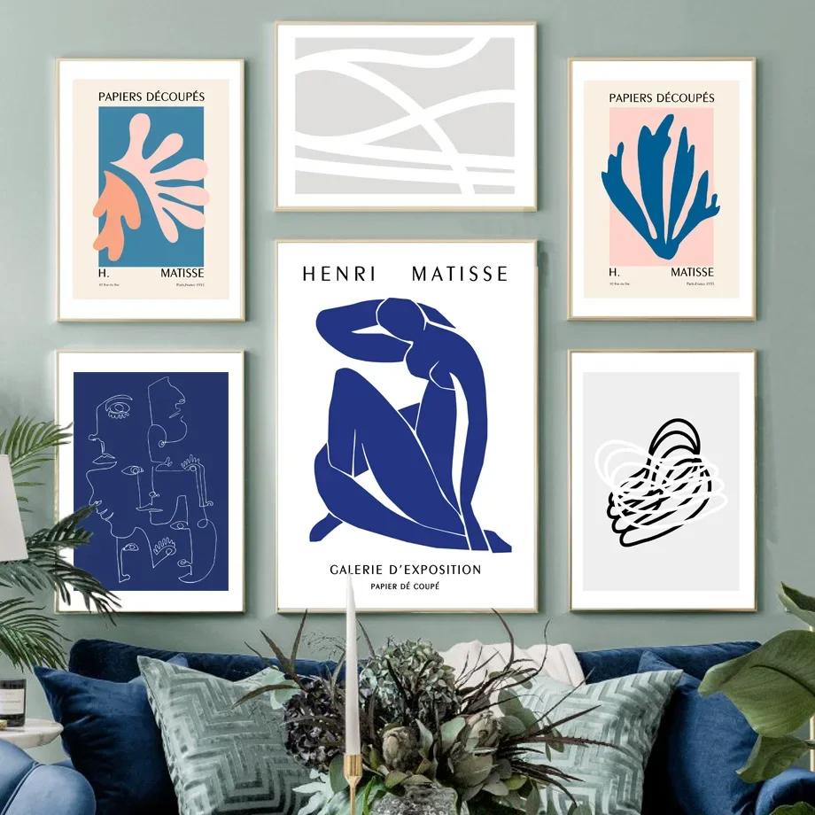 Матисс синяя абстрактная линия женщина лист настенная живопись холст картины плакаты на скандинавскую тему и принты настенная картина для гостиной домашний декор