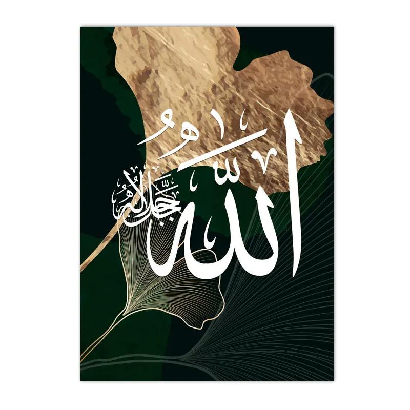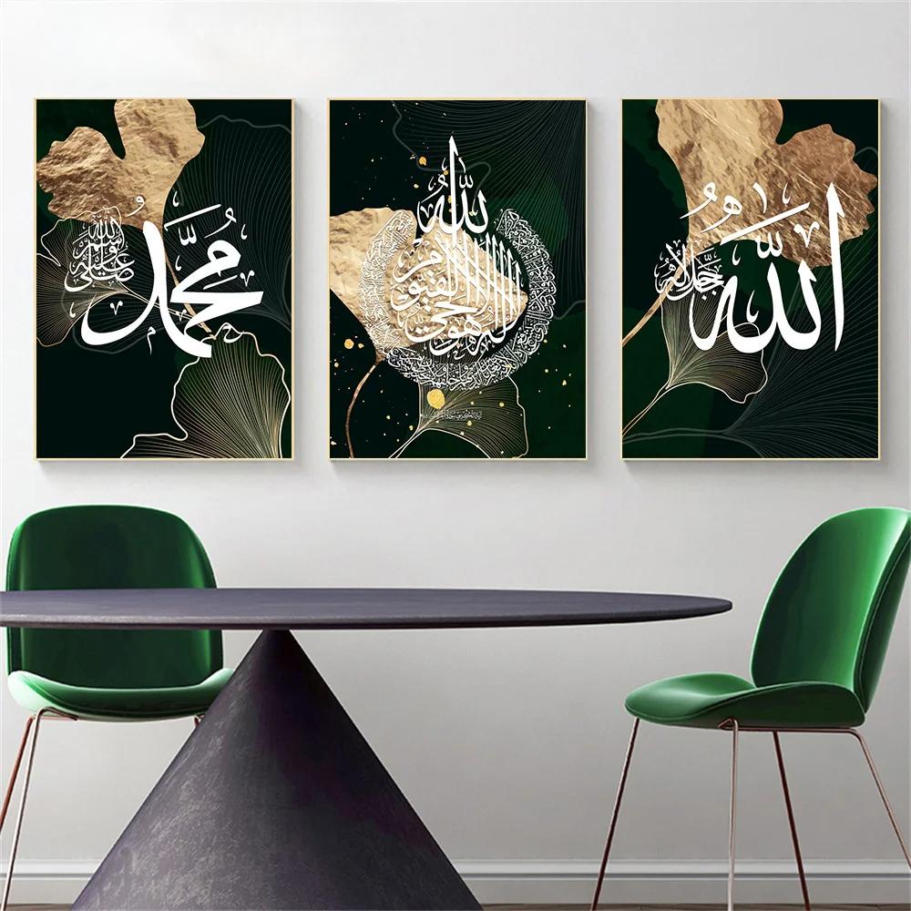 Зеленый Золотой Мрамор Плакат Исламская Каллиграфия Аллах Акбар Картина на Холсте Аятуль Курси Настенная Живопись Картины Декор Гостиной