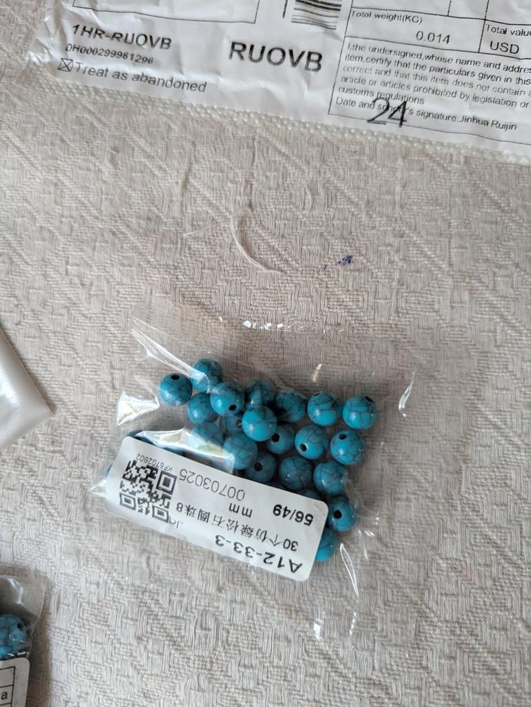 Нормальные бусинки, хорошая имитация трещиноватой бирюзы. Дырочка крупная. Бусины отполированы