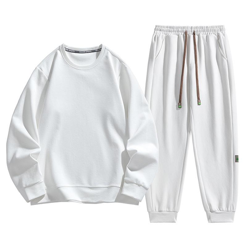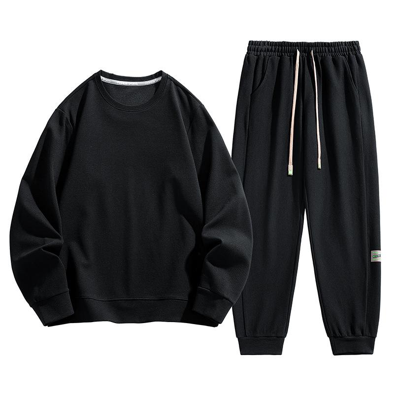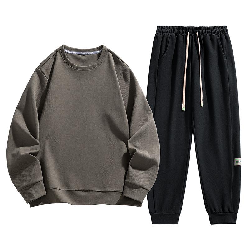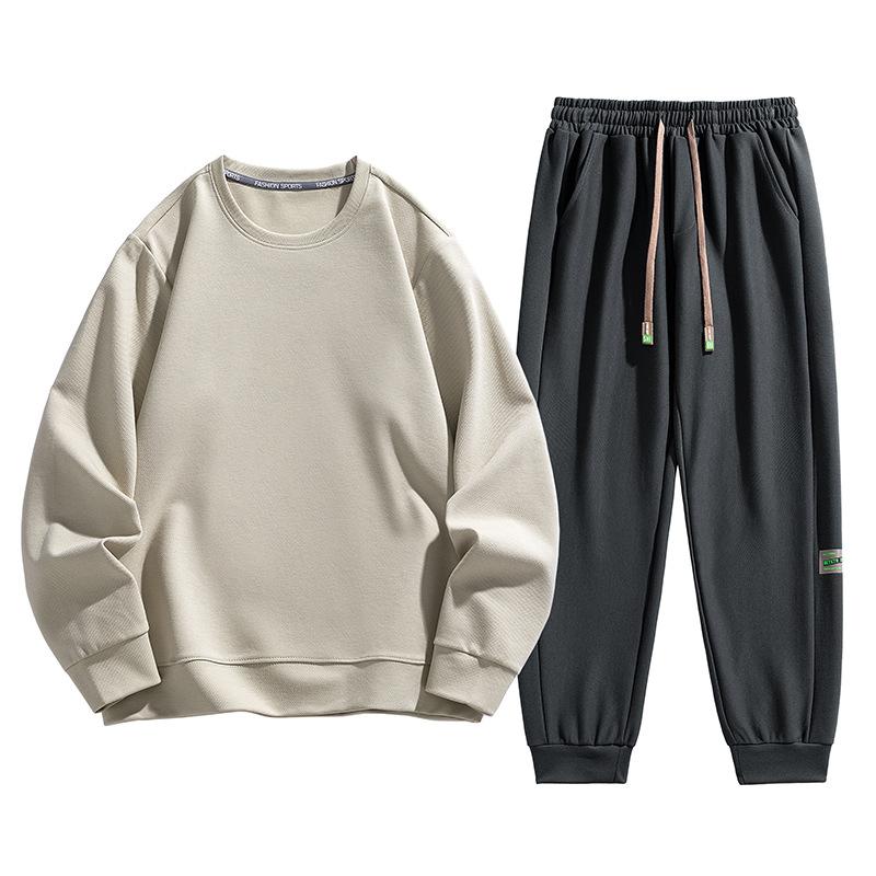 Комплект из двух предметов из хлопка для мужчин на весну и осень, повседневный спортивный костюм с круглым вырезом, свитер, брюки, комплект из 2 предметов, большой размер