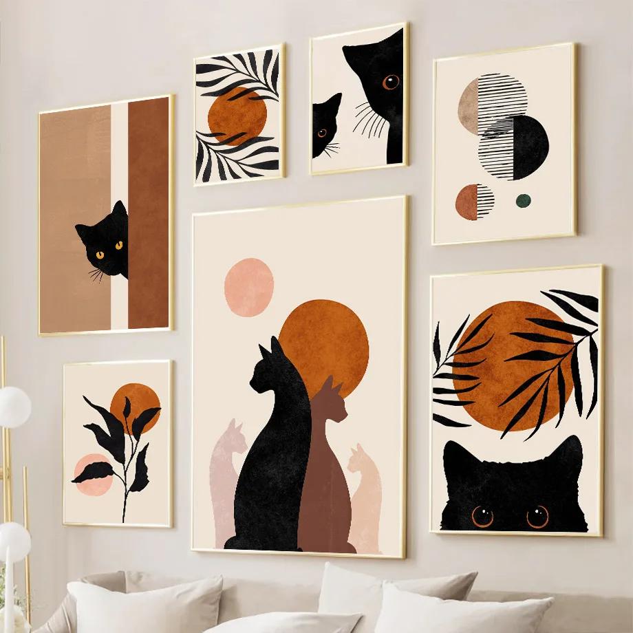 Абстрактные Бохо Солнце Чаши Черные Кошки Принты Настенное Искусство Минималистский Нейтральный Холст Картина Современные Картины Декор Гостиной Постеры