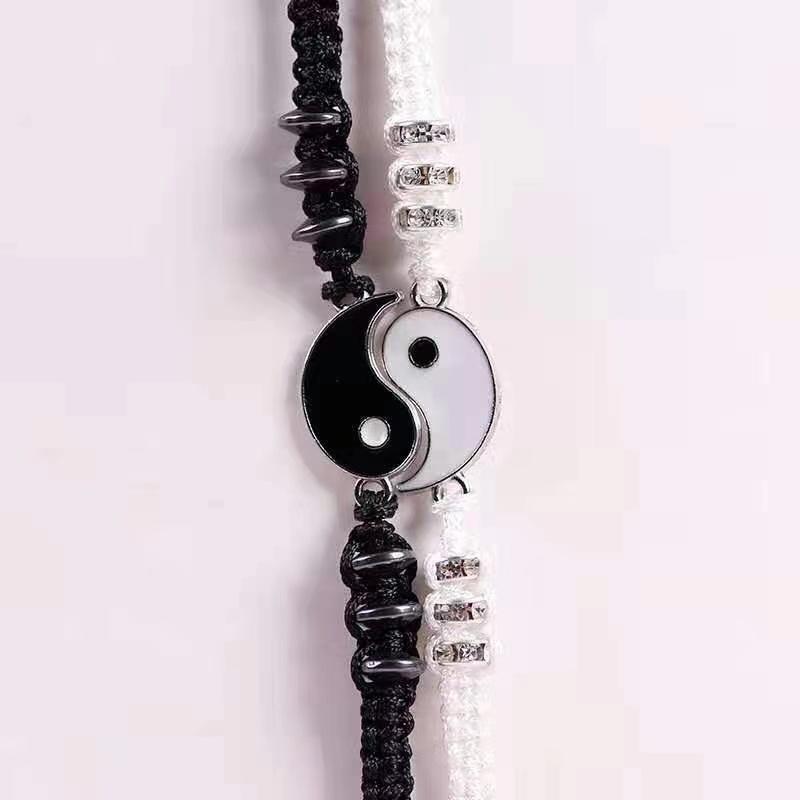 Соответствующий набор браслетов Инь и Ян. Изысканный набор браслетов Тай Чи, сотканный вручную.