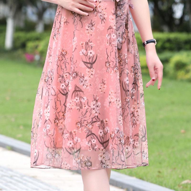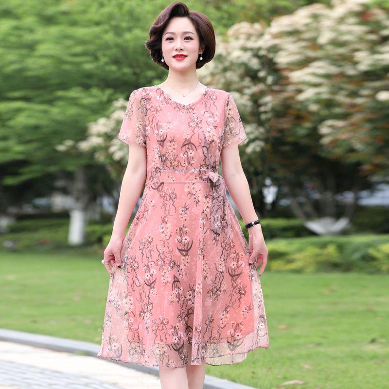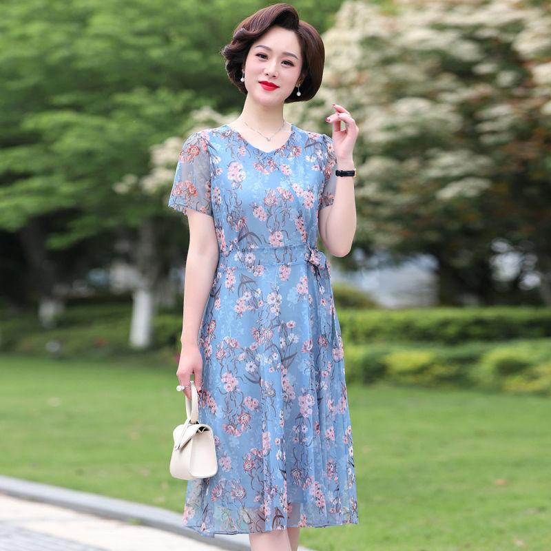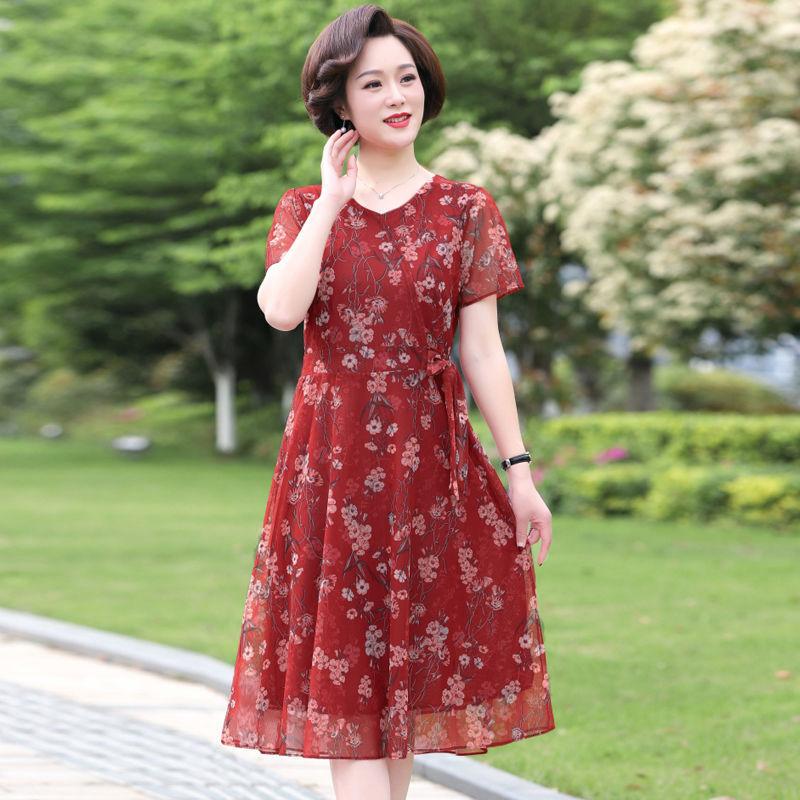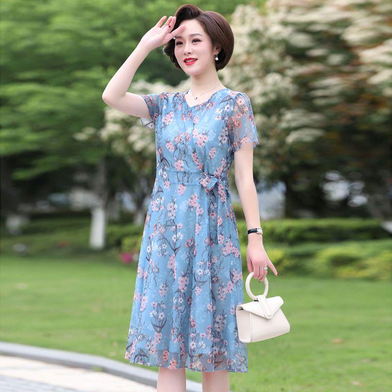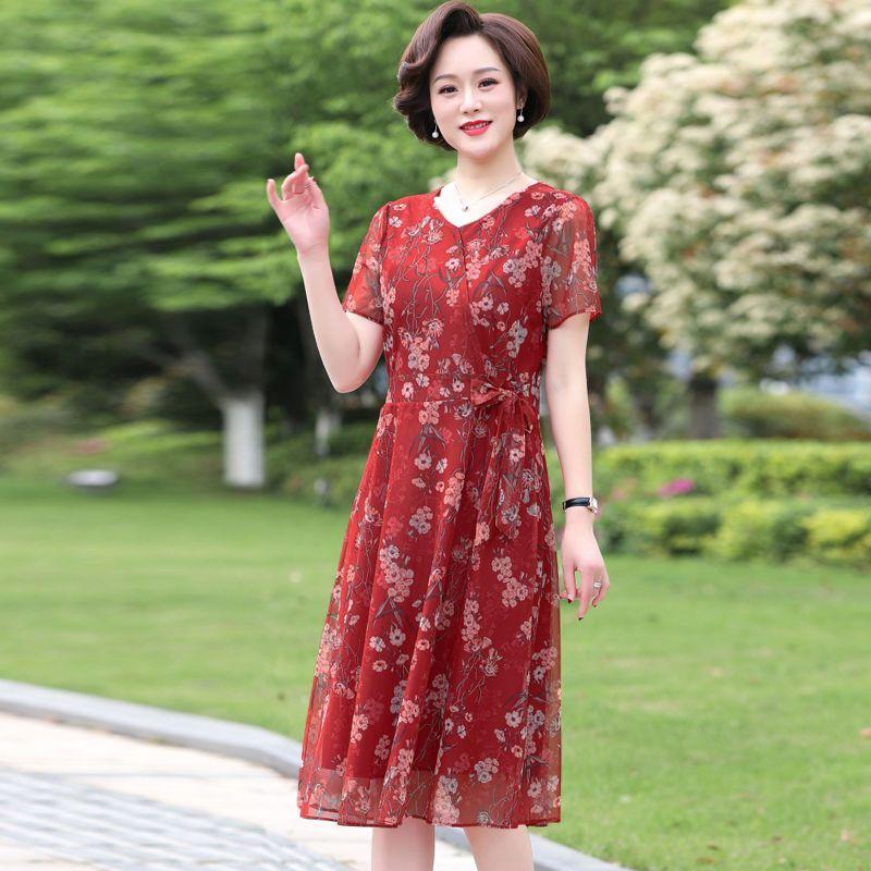 Облегающее платье для мам среднего и пожилого возраста, модное дышащее женское платье с трафаретной печатью средней длины, с короткими рукавами, большого размера