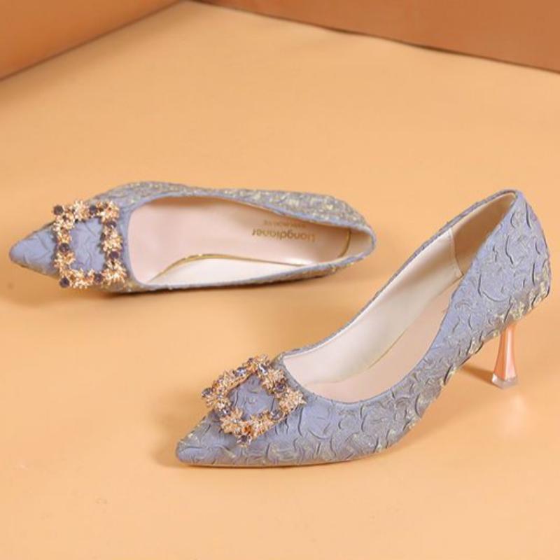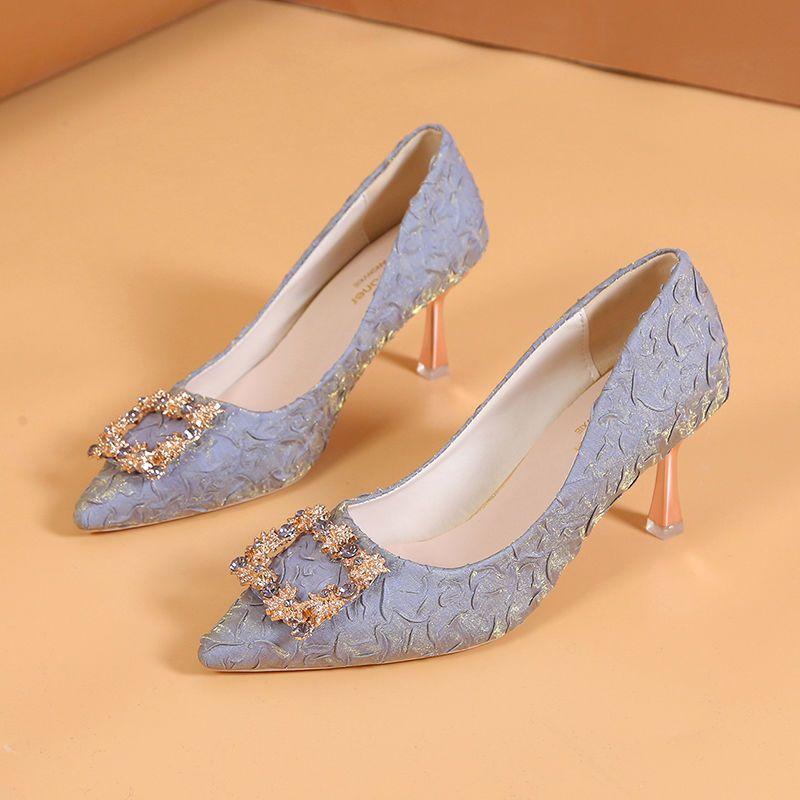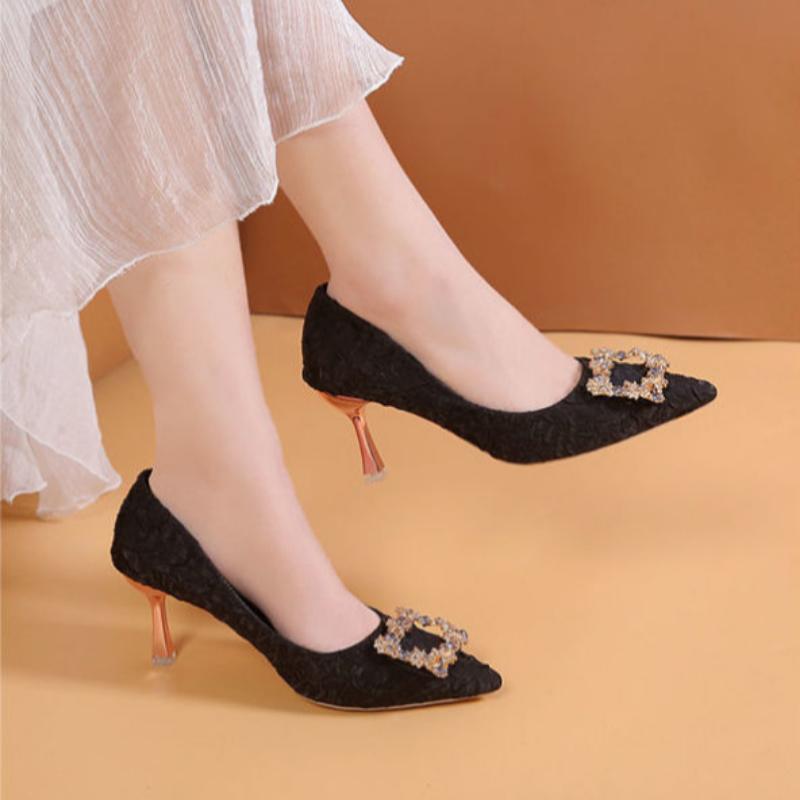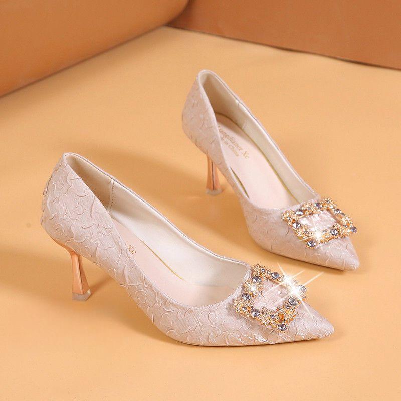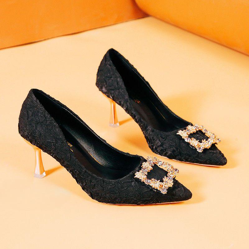 Женские туфли на высоком каблуке с острым носком и тонким каблуком, на среднем высоком каблуке 7 см, с бантом и стразами, на мягкой подошве, для покупок, свиданий, банкета и обуви