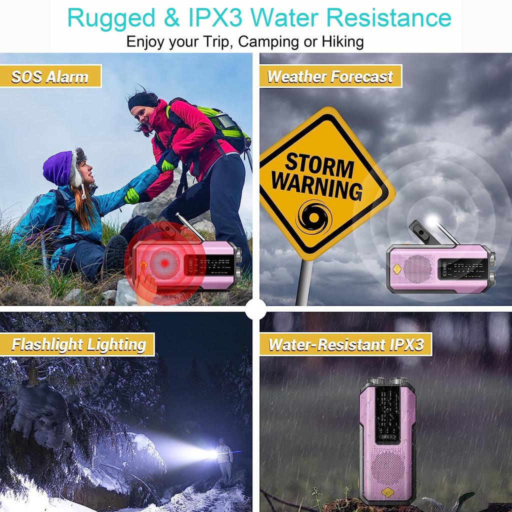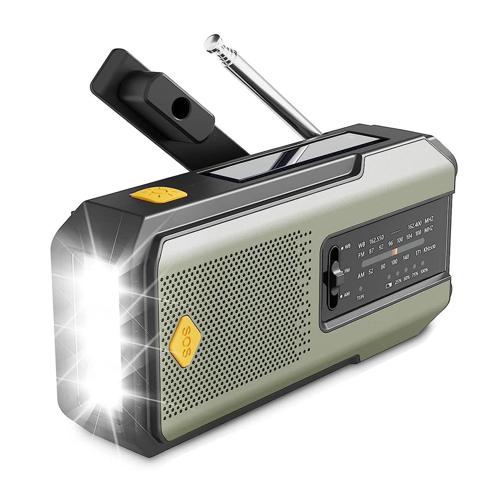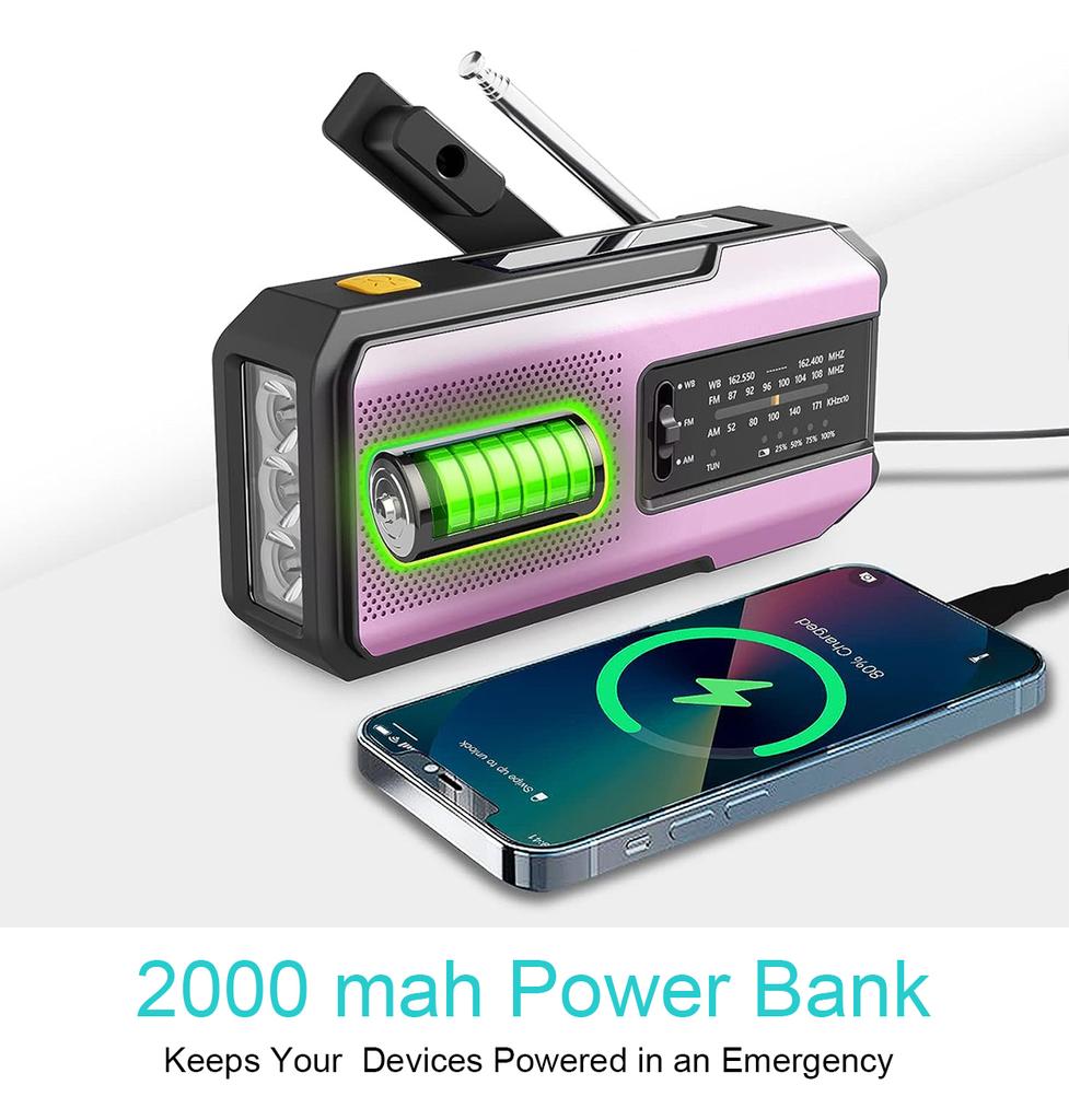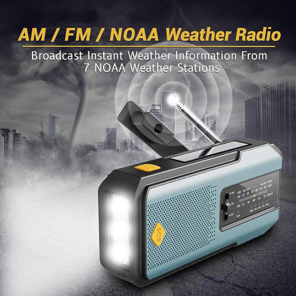 Аварийное метеорологическое радио NOAA, портативное радио с рукояткой, солнечная батарея, AM/FM, сигнализация SOS, фонарик, аккумуляторная батарея емкостью 2000 мАч