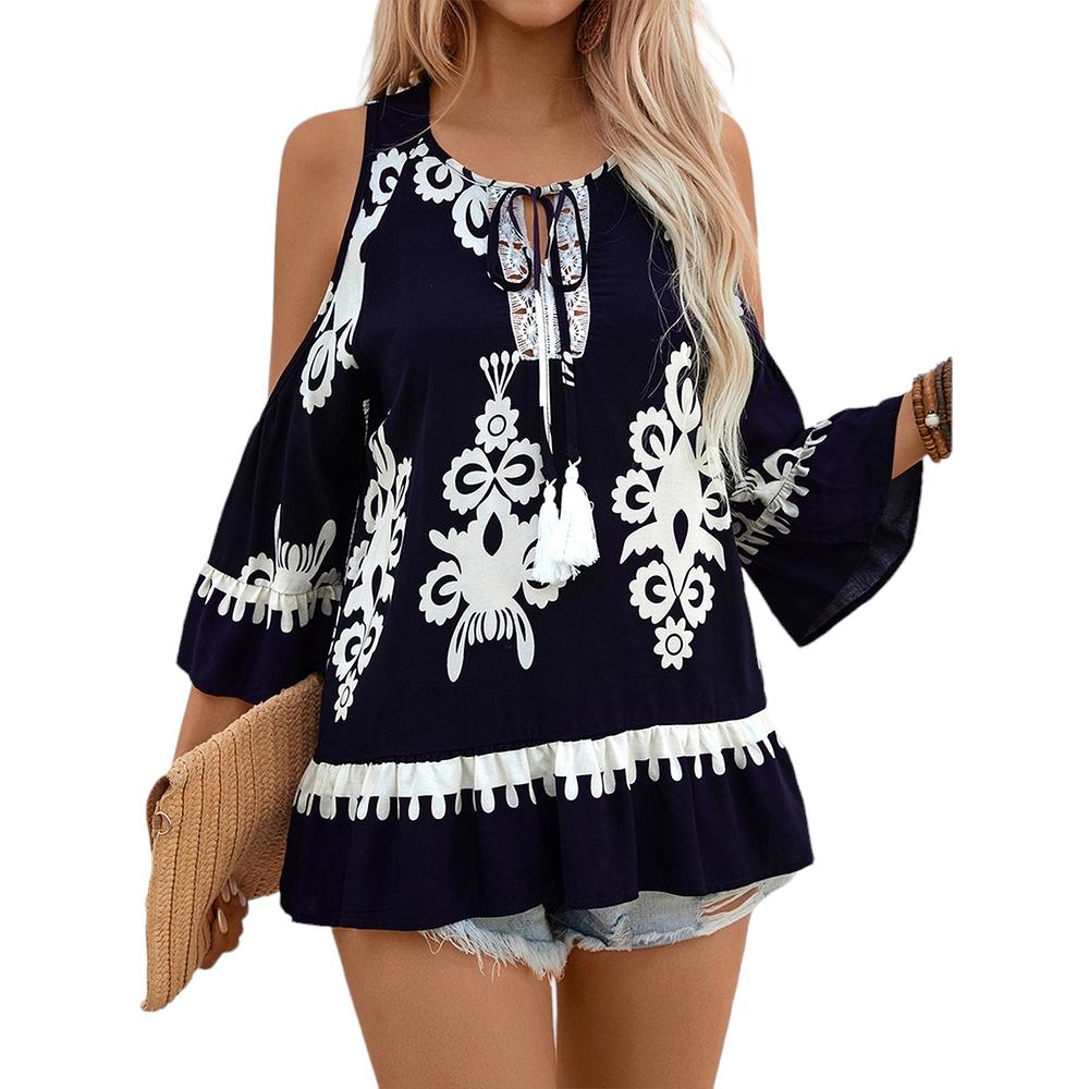 Женская богемная туника с открытыми плечами, топы, женская повседневная свободная футболка, блузка — купить товар онлайн с бесплатной доставкой до всему миру!