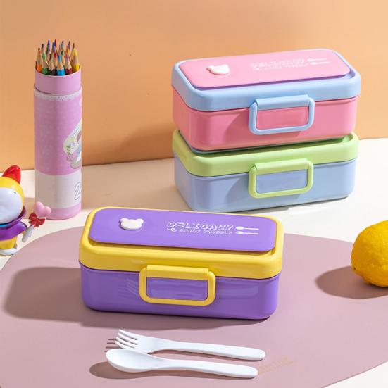 Эффективный двухслойный дизайн: Этот ланч-бокс с продуманной двухслойной структурой имеет отдельные отделения, предотвращающие смешивание вкусов продуктов.. Дополнительный слой для посуды повышает организованность и удобство, что делает его практичным выбором для хранения еды.