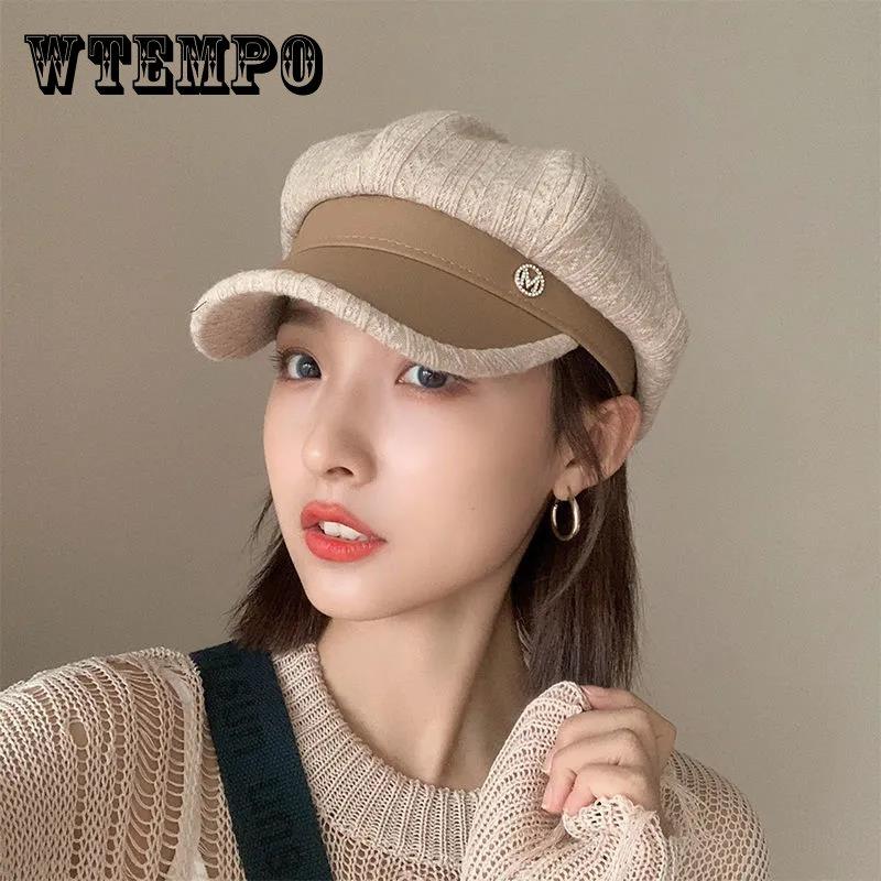 Осенне-зимняя восьмиугольная шляпа в стиле ретро из искусственной кожи, вязаная шляпа художника в стиле дикого ретро для женщин