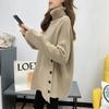Однотонный свитер, женский свободный верх, комплект ленивого ветра, высокий воротник, корейская версия утолщенных вязаных топов
