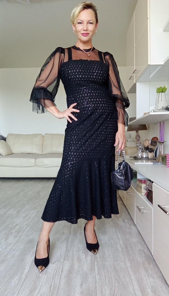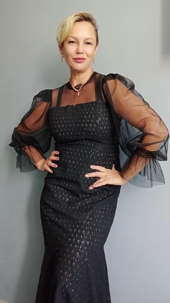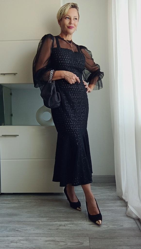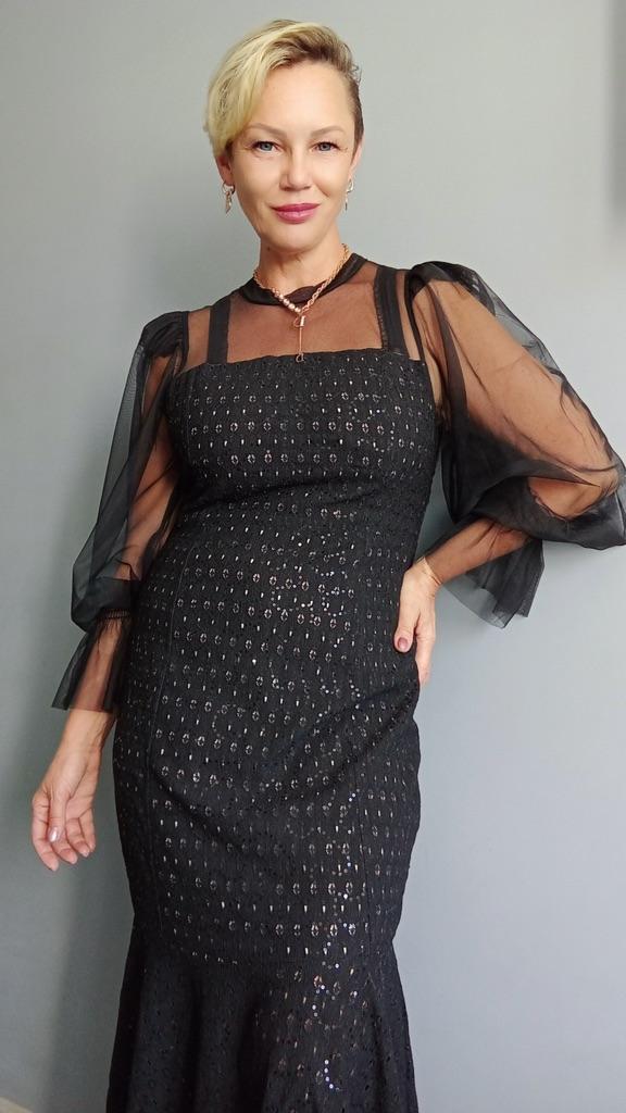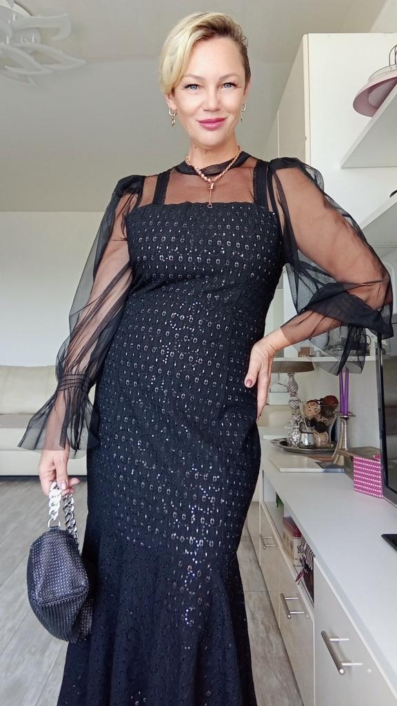 Нарядное платье ‼️На мне размер 2xl. Мои параметры : 167, 96-82-98. Можно было взять на размер меньше. Не просто нарядное, а максимально нарядное). ‼️Верхняя часть и рукава из сетки. В области плеч подобие крылышек из сетки, чтобы рукав держал форму. Силуэт по фигуре. Внизу отрезное, подол «рыбка». Внизу бежевая подкладка, которая подтянет животик, если он имеется. Встроены чашечки, и платье можно носить без бюстгальтера. Однако, можно и с ним, как у меня) потому что вид это не портит. ‼️Ткань украшена мелкими пайетками. Практически не тянется. Подкладка похожа на хлопок. Верх, скорее всего, синтетика. Пошив фабричный. Если хотите произвести фурор на окружающих, присмотритесь к этому платью. Оно уместно и для дня рождения, и театра, и празднования Нового года. 📐Замеры: Плечи 32 Длина рукава от горловины 71 Длина рукава 63 Ширина рукава вверху 28 ОГ подмышками 96 ОТ 84 ОБ 100 Длина 125