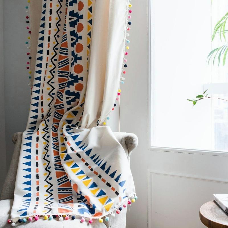 1 шт. Бохо геометрический принт хлопковые льняные шторы панель с красочным помпоном гостиная спальня — купить товар онлайн с бесплатной доставкой по всему миру!